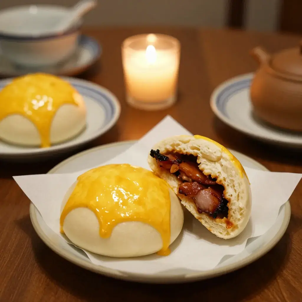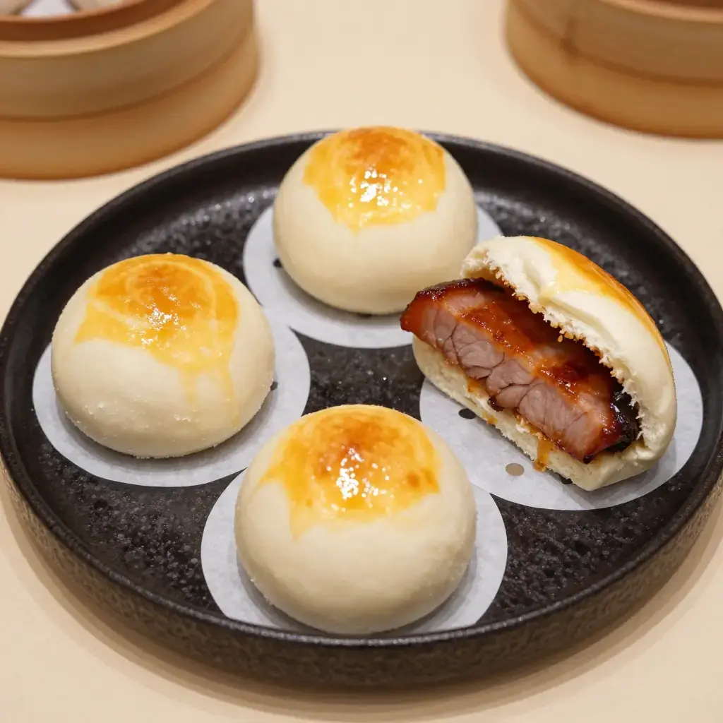 Char siu bao exist in two forms — steamed (white, pillow-soft) and baked (golden, glazed) — and both are the soul of Cantonese dim sum trolley culture. The baked version, with its shiny egg-washed domed crown and sweet-savoury char siu pork filling, is a beloved Hong Kong snack eaten any hour of the day.