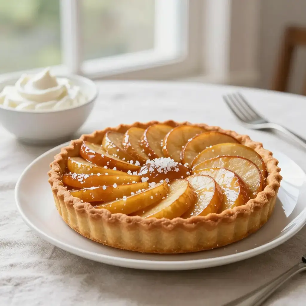 # Tarte Tatin Born from a happy accident at the Hôtel Tatin in Lamotte-Beuvron in the 1880s, the Tarte Tatin has become one of France's most beloved heirloom desserts. Apples are caramelised directly in butter and sugar, then crowned with pastry and baked before being dramatically inverted at the table. Serves: 6 ## Ingredients - 1.2 kg (2.6 lb) firm apples (Golden Delicious or Braeburn), peeled, cored, quartered - 100 g (3.5 oz / 7 tbsp) unsalted butter - 150 g (5 oz / ¾ cup) caster (superfine) sugar - 1 tsp vanilla extract - Pinch of fleur de sel - 1 sheet (230 g / 8 oz) all-butter puff pastry, or shortcrust pastry - Crème fraîche, to serve ## Instructions 1. Preheat your oven to 190°C (375°F). In a 24 cm (9.5 in) oven-safe frying pan, melt the butter over medium heat. Add the sugar and cook without stirring until it turns a deep amber caramel, 8-12 minutes. 2. Add the vanilla and fleur de sel, then arrange the apple quarters tightly in concentric circles in the caramel. They will shrink as they cook. Cook on the stovetop for 10-12 minutes, gently pressing the apples down as they soften. 3. Roll the pastry out to a circle slightly larger than your pan. Drape it over the apples, tucking the edges down around the fruit inside the pan. 4. Bake for 25-30 minutes until the pastry is a deep golden brown. 5. Allow to cool in the pan for exactly 10 minutes — no longer or the caramel will stick. Place a serving plate larger than the pan firmly on top and invert in one confident motion. 6. Serve warm with a generous spoonful of crème fraîche. **Cook's Notes:** The key to a great Tarte Tatin is a dark, almost bitter caramel — do not stop too early. Use apples that hold their shape during long cooking. If the caramel seizes when you add the apples, do not panic — it will remelt.Images