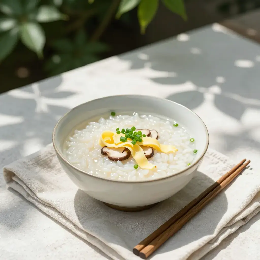 Zosui is a gentle Japanese rice porridge made by simmering pre-cooked rice in a seasoned broth until it blooms and thickens. Unlike Chinese congee, zosui uses broth — often leftover from a nabe hotpot — rather than water, giving it a deeply layered flavour. It is eaten as a nourishing finish to a meal or as restorative food during cold weather or illness.