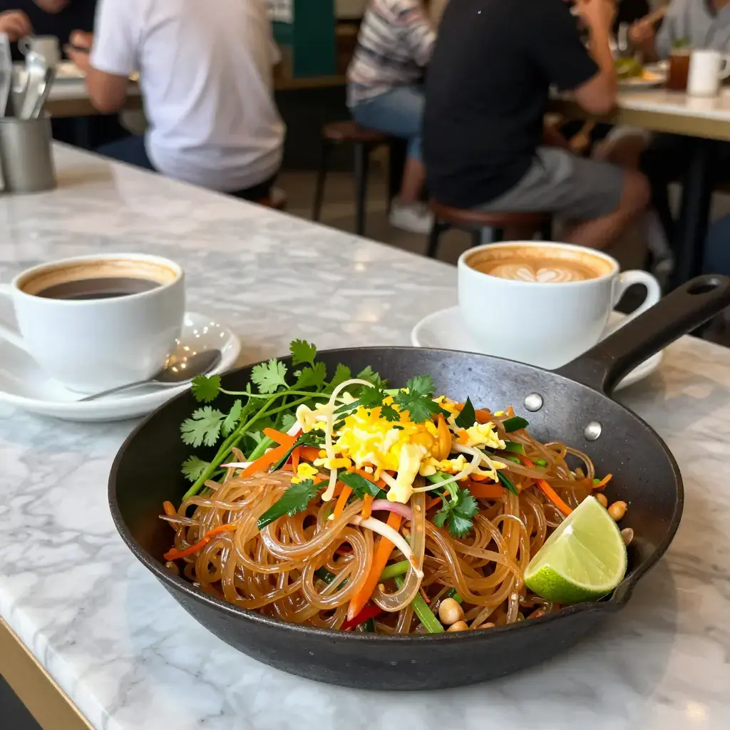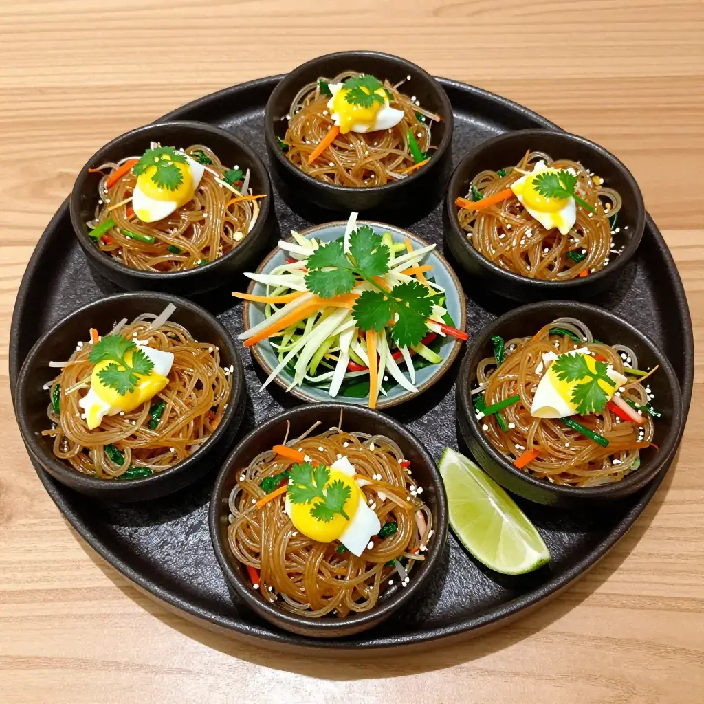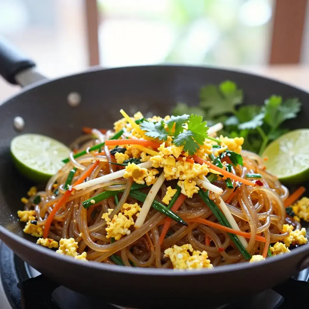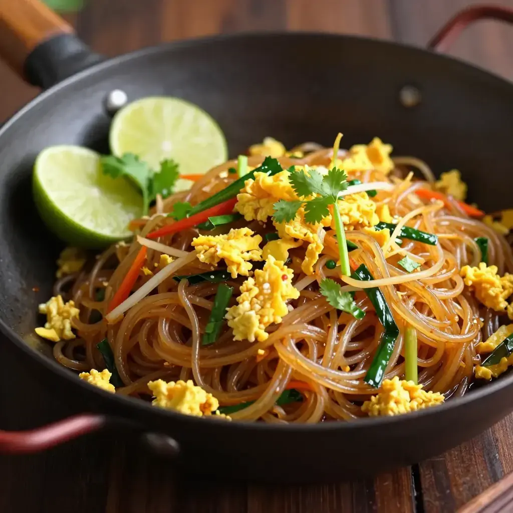 Pad woon sen is a beloved Thai stir-fry of cellophane glass noodles tossed with egg, vegetables, and a sweet-savoury oyster sauce glaze. Popular as street food and home cooking alike, its translucent, slippery noodles soak up the sauce beautifully. It is lighter than pad thai and quicker to prepare — most street vendors finish a portion in under three minutes.