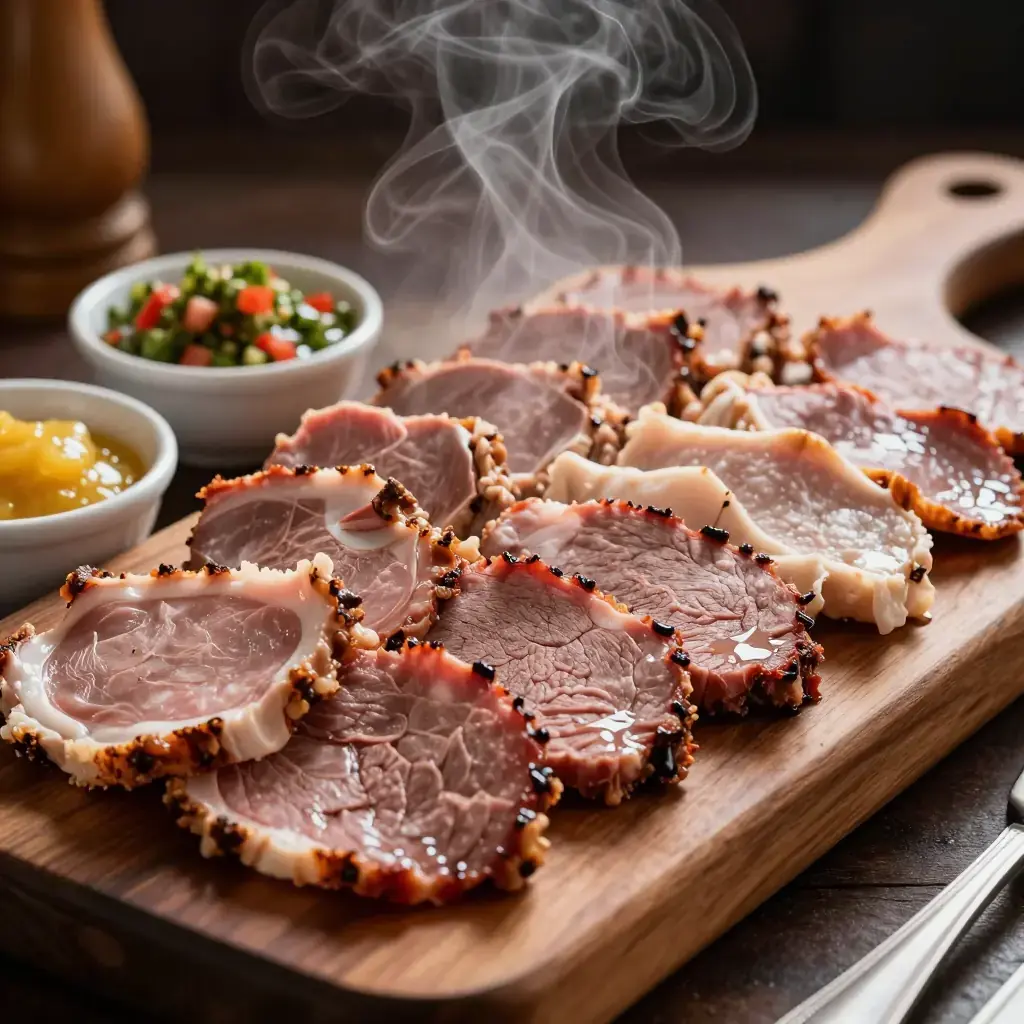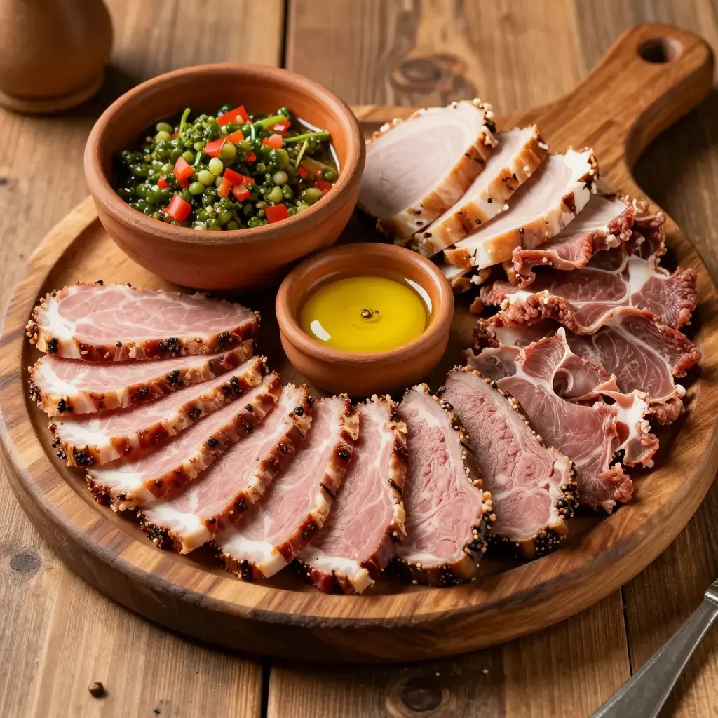- Slice all meats on a large wooden carving board. Ladle some hot broth over the slices to keep moist. Serve immediately with salsa verde, Dijon mustard, and cornichons.