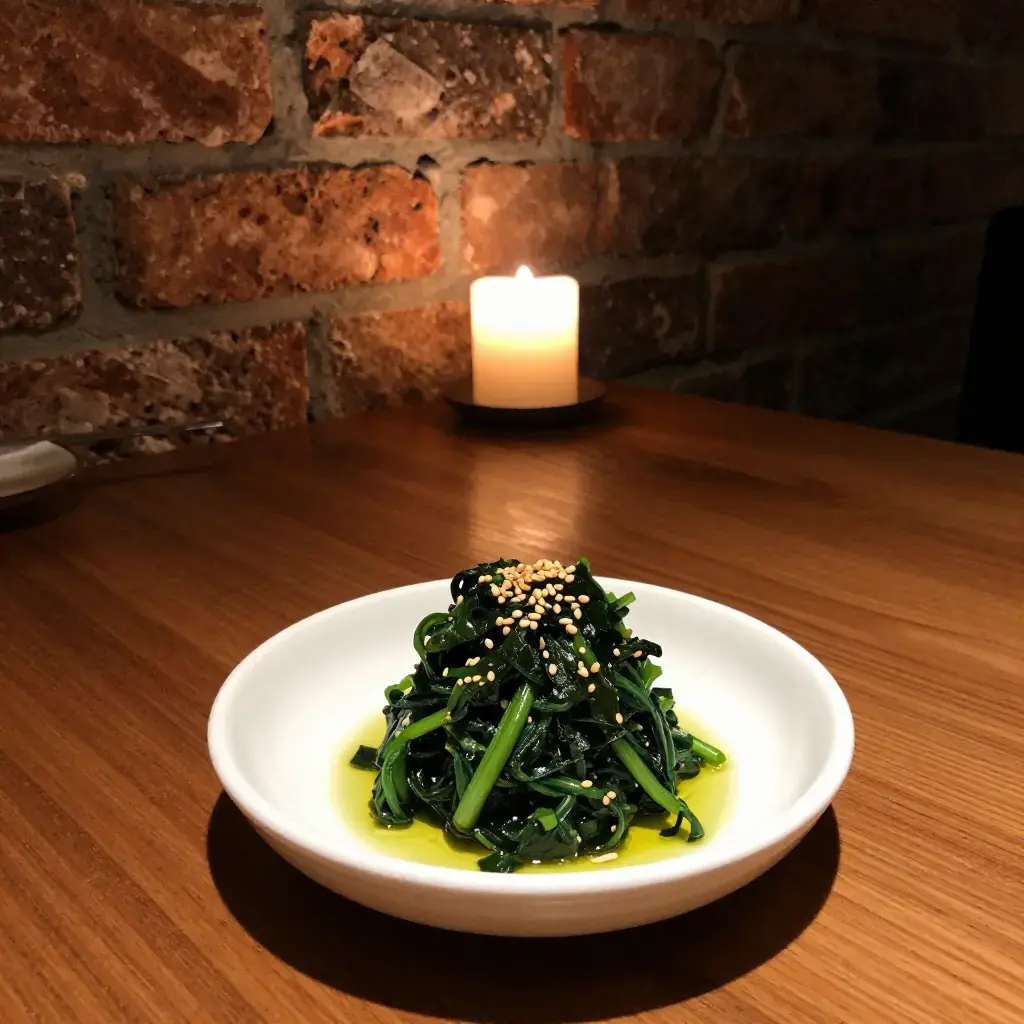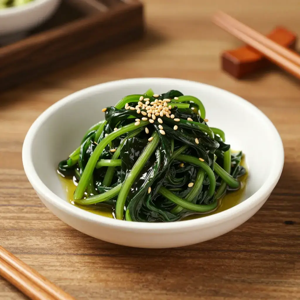 Sigeumchi Namul is one of the foundational banchan — the small side dishes that accompany every Korean rice meal. Blanched spinach is quickly dressed with sesame oil, garlic, and soy sauce, then served at room temperature. It is a five-ingredient weeknight staple that doubles as a vivid, healthy packed-lunch component and is an indispensable building block of bibimbap.