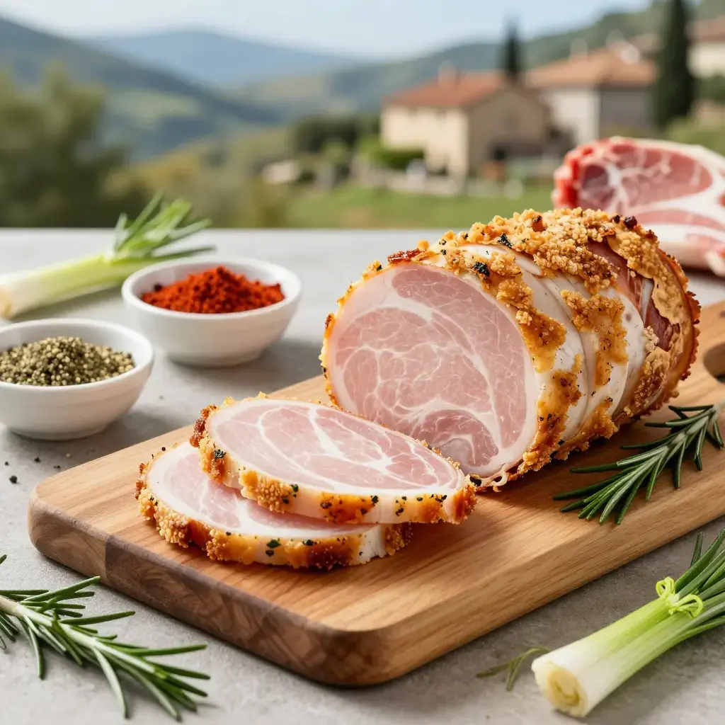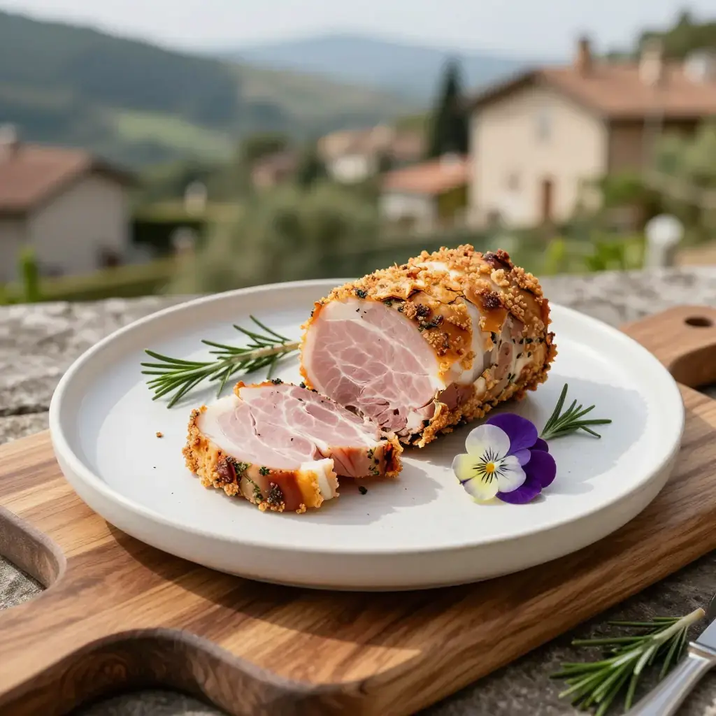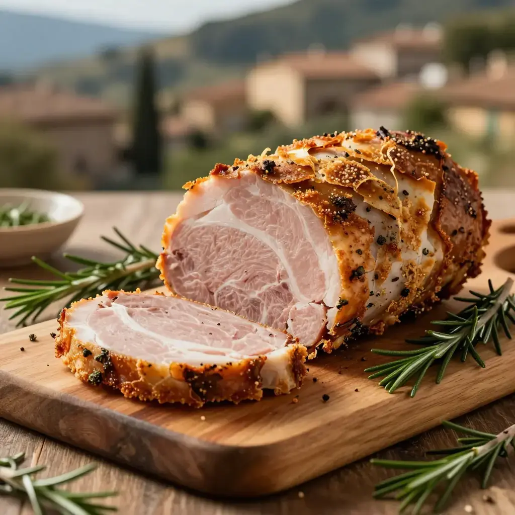 Cook's Notes: Do not cover the porchetta while resting — steam will soften the crackling. If the skin has not fully crackled, blast under the grill (broiler) for 3–5 minutes at the end. Leftovers are superb cold in sandwiches the next day.