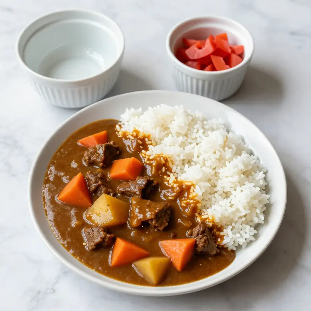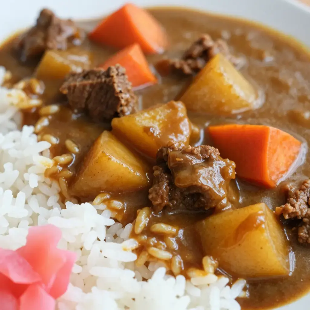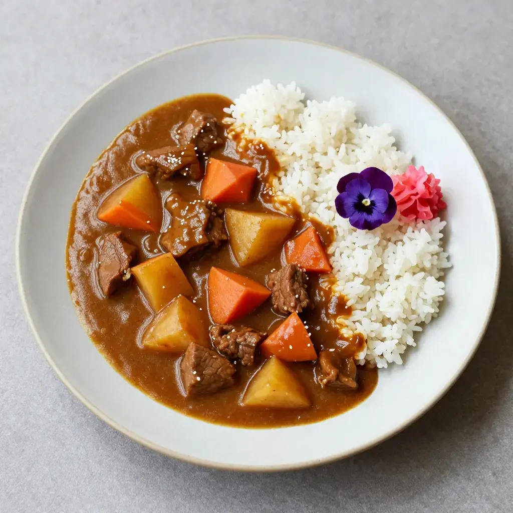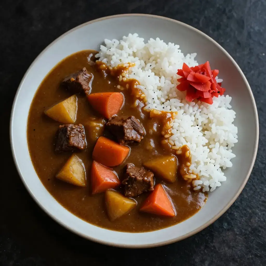 # Kare Raisu Japanese curry — kare raisu — arrived via the British Royal Navy in the Meiji era and became one of Japan's most beloved national comfort foods, eaten by schoolchildren and salarymen alike. The Japanese version is sweeter, milder, and thicker than its South Asian ancestors, slow-simmered until the vegetables melt into a glossy, deeply savoury sauce that clings to every grain of rice. Serves: 4 ## Ingredients - 500g (1 lb) boneless beef chuck or chicken thigh, cut into 3cm cubes - 3 tbsp vegetable oil - 2 large onions, halved and thinly sliced - 3 garlic cloves, minced - 1 tbsp fresh ginger, grated - 2 medium carrots, cut into rolling chunks - 3 medium potatoes (about 400g / 14 oz), cut into chunks - 800ml (3⅓ cups) beef or chicken stock - 1 tbsp soy sauce - 1 tbsp Worcestershire sauce - 1 tbsp apple (or apple juice) - 100g (3.5 oz) Japanese curry roux blocks (e.g. S&B Golden Curry, medium hot), broken into pieces - Steamed Japanese short-grain rice, to serve - Fukujinzuke pickled radish, to serve ## Instructions 1. Heat oil in a large heavy pot over medium heat. Add the onions and cook slowly, stirring every 5 minutes, for 25–30 minutes until very soft and golden. This caramelisation is the foundation of the flavour. 2. Increase heat to medium-high. Add the meat and cook until lightly browned on all sides, about 5 minutes. 3. Stir in garlic and ginger; cook 1 minute. 4. Add carrots, potatoes, stock, soy sauce, Worcestershire sauce, and grated apple. Bring to a boil, then skim any foam from the surface. 5. Reduce heat to low, cover, and simmer for 35–40 minutes until the vegetables are tender and the meat is cooked through. 6. Remove from heat. Add the curry roux blocks and stir until completely dissolved and the sauce thickens to a glossy, velvety consistency, about 3 minutes. 7. Return to lowest heat and simmer gently, uncovered, for 5 more minutes. Serve over steamed rice with fukujinzuke pickles. **Cook's Notes:** The apple (or a splash of apple juice) softens the sauce's edges and gives the characteristic Japanese curry sweetness. For a slow cooker, caramelise the onions on the stovetop first, then transfer everything except the roux into the slow cooker on LOW for 6–8 hours, adding roux at the end.Images