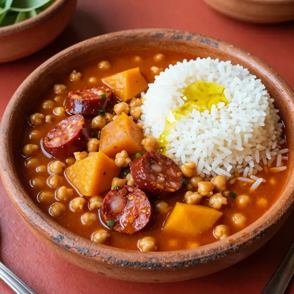 Potaje — thick, slow-cooked bean stews — are the soul food of Cuba's working kitchens. The chickpea version, beloved across the island, combines dried garbanzos with salt-pork, chorizo, pumpkin, and a classic sofrito of tomato, onion, pepper, and garlic. Served over white rice, a bowl of potaje is a complete, economical, and deeply comforting meal that feeds a family on very little.