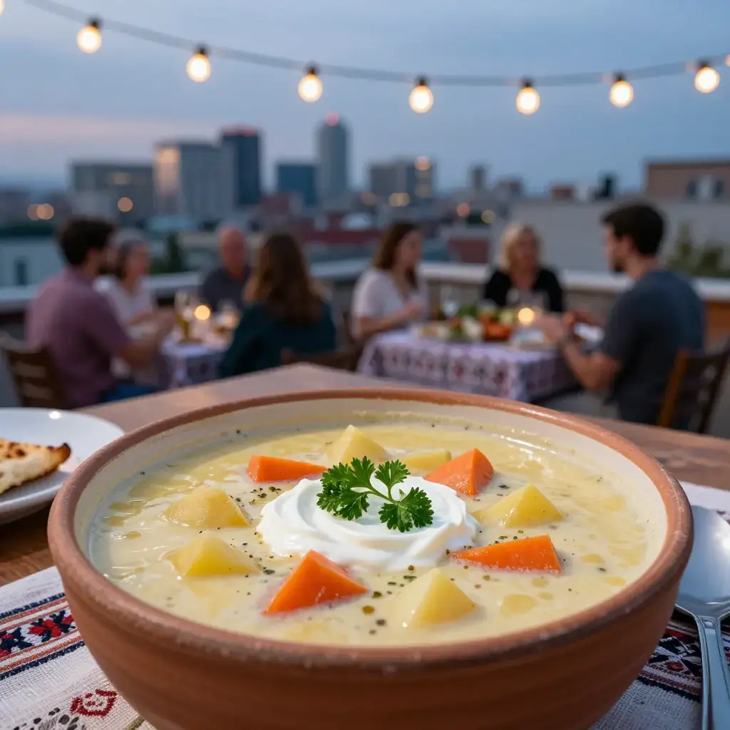 Čorba is the everyday soup of the Serbian table, derived from the Turkish word for broth. The sour variant — thickened with a mixture of egg and cream and sharpened with vinegar — is beloved for its restorative quality, particularly in winter. This vegetable version uses the root-heavy garden produce that cellars Serbian households through the cold months.
