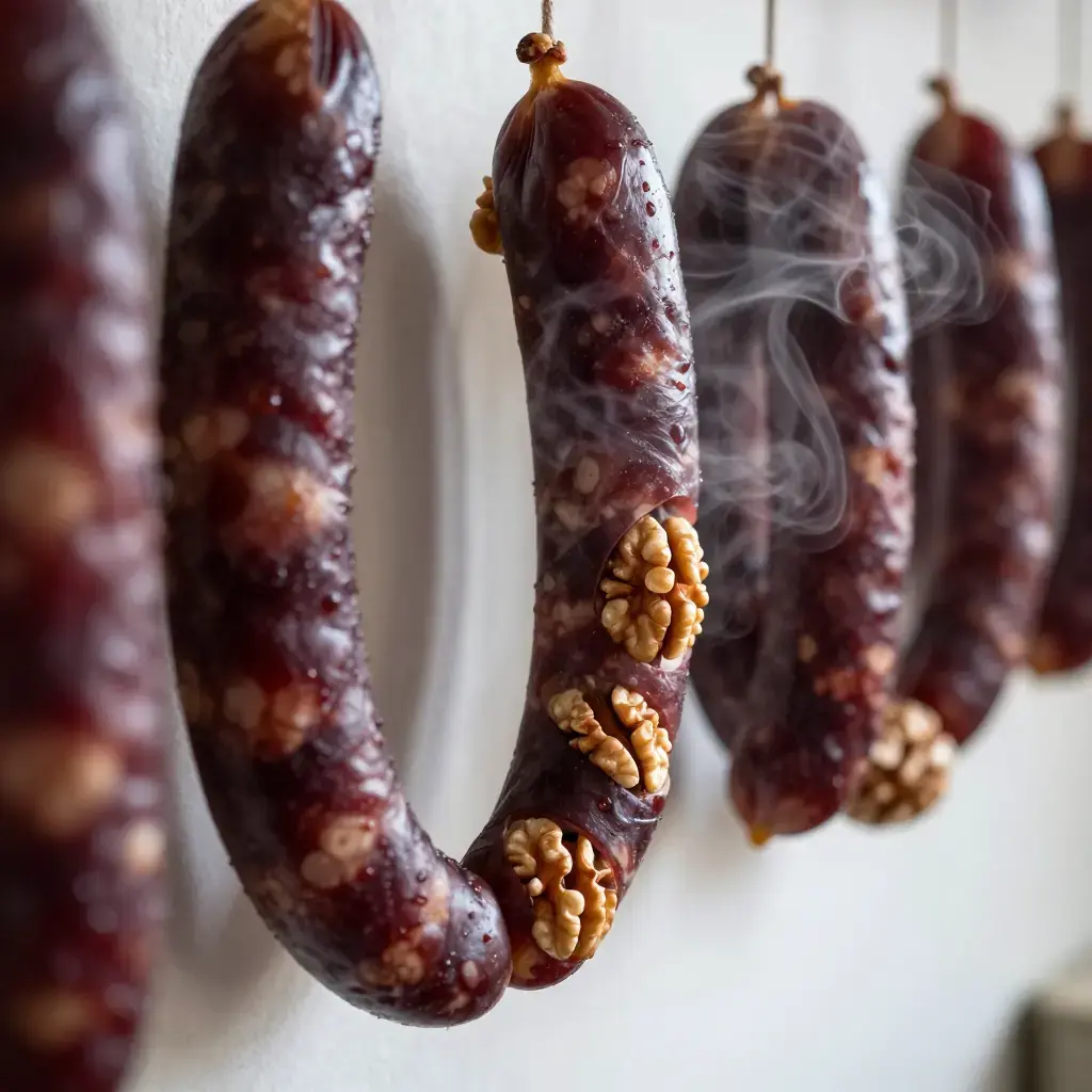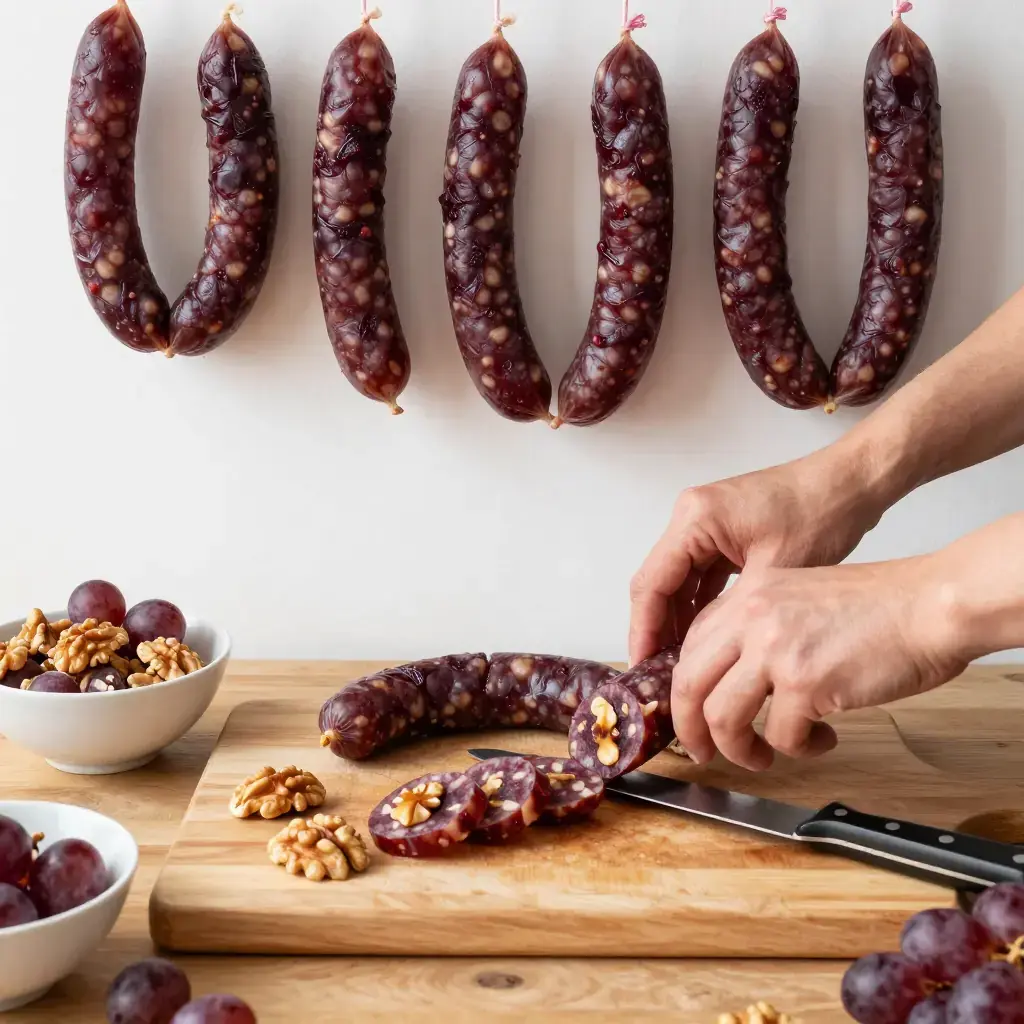 Cook's Notes: The tatara must be kept warm during dipping — reheat gently if it thickens too much. Churchkhela keeps for months wrapped in a cloth in a cool pantry; it develops a fine white bloom from grape sugars, which is natural and desirable.