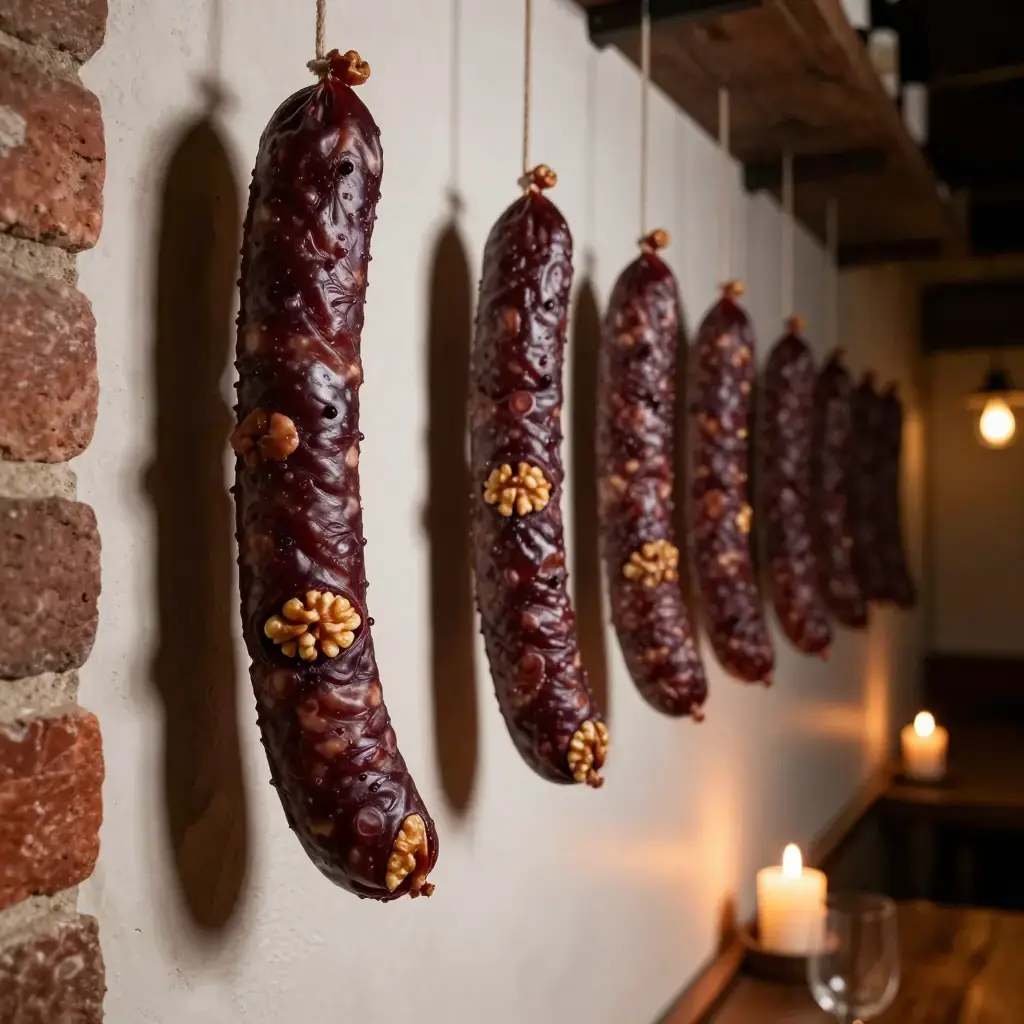 Churchkhela is one of the ancient foods of Georgia, walnuts (or hazelnuts) threaded on a string and repeatedly dipped in thickened grape must until encased in a firm, jewel-coloured shell. Made each autumn at grape harvest, it sustained Georgian warriors and travellers for centuries, and today hangs in every market from Tbilisi to Kakheti. Making it at home is a weekend-long project and a direct link to Georgian antiquity.