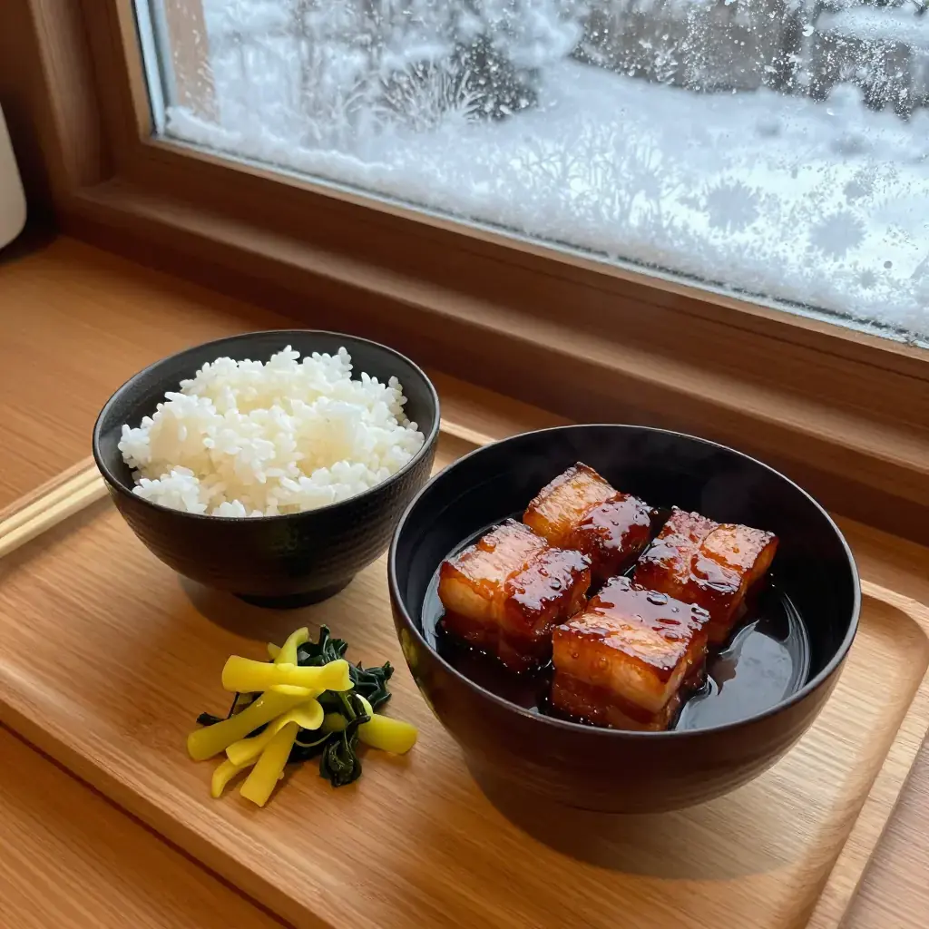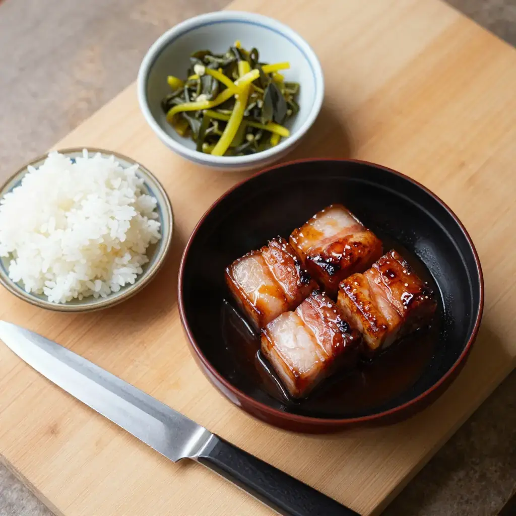 Kakuni — "square simmered" — is Japan's answer to the slow-braised pork belly: thick cubes of pork cooked until the fat trembles and the meat collapses at a chopstick's nudge. Originating in Nagasaki with influences from Chinese red-braised pork, kakuni is a weekend project that rewards patience with extraordinarily tender, lacquer-glazed results. It is even better the next day after the fat solidifies and can be skimmed.