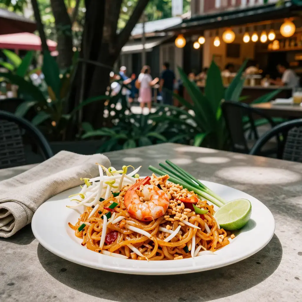 Pad Thai became Thailand's national dish through a deliberate government campaign in the 1930s promoting noodle consumption and national identity, but it swiftly transcended its origins to become one of the world's great street foods. Sold from smoking woks along Bangkok's Yaowarat Road, the dish balances tamarind's sour sweetness, fish sauce's umami depth, and the crunch of bean sprouts and peanuts.