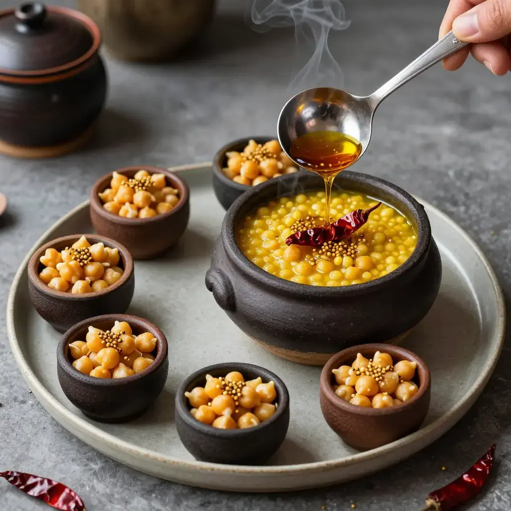 - Pour the sizzling tadka over the dal immediately at the table. Do not stir — let guests smell the drama.