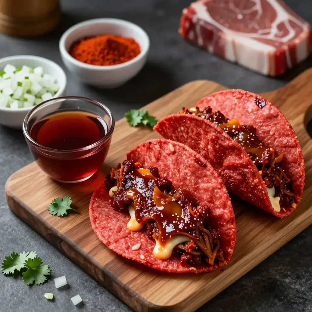 Cook's Notes: The key is using the fat-layer from the braising liquid — not the broth — to dip the tortillas. This is what gives quesabirria its characteristic deep red colour and crispy exterior. Goat meat (birria de chivo) is the traditional Jalisco version; beef is the Tijuana innovation. The consommé is essential — half the pleasure is dipping.