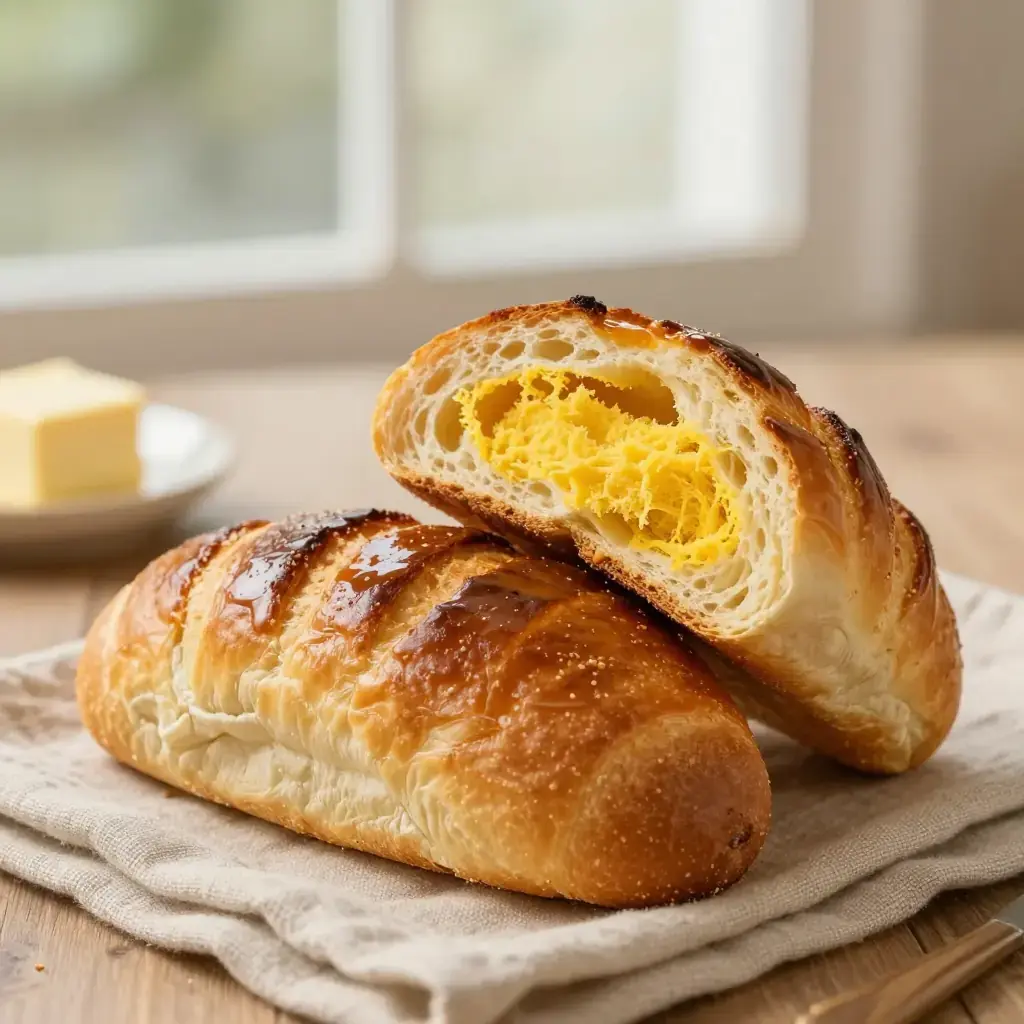 - Preheat the oven to 190°C (375°F). Brush the loaves generously with the second beaten egg. Bake for 22–25 minutes until deep golden and hollow-sounding when tapped on the base.