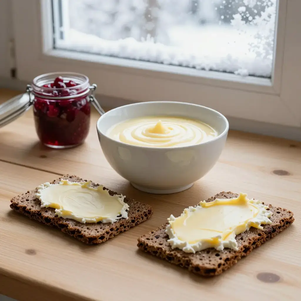 Filmjölk — a mildly tangy, pourable fermented milk with a consistency between yogurt and buttermilk — is the quintessential Swedish everyday breakfast, consumed by around 60% of the population daily. Unlike yogurt cultures, filmjölk uses a mesophilic starter that ferments at room temperature, giving it a clean, slightly buttery sourness. It is eaten simply, poured into a bowl and topped with cereal or eaten alongside knäckebröd.