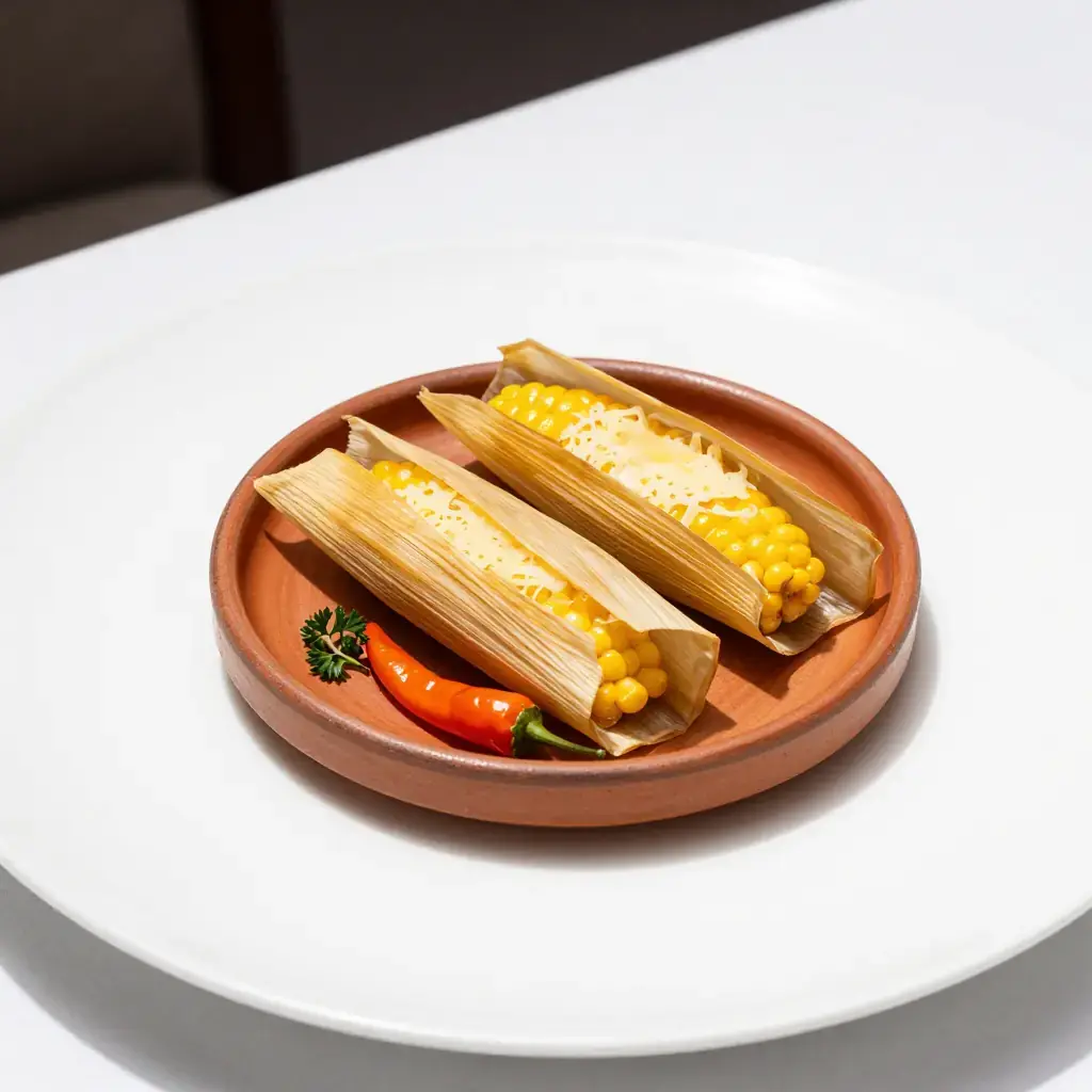 # Humita en Chala (Humita en Chala) Humitas are one of the oldest prepared foods of the Andes — a pre-Columbian tradition of grinding fresh corn into a masa, seasoning it with onion, cheese, and chilli, wrapping it in dried corn husks, and steaming until tender. Unlike their Mexican cousin the tamal, humitas are made with fresh (not dried) corn and have a sweeter, more delicate flavour. They are eaten throughout Peru, Bolivia, and Ecuador as breakfast, a snack, or a light lunch. Serves: 4 (makes 8 humitas) ## Ingredients - 6 large ears of fresh sweet corn, husks carefully removed and reserved intact - 1 medium white onion, finely diced - 2 tbsp (30ml) vegetable oil - 1 ají amarillo (or ½ tsp ají amarillo paste), finely chopped - 150g (5½ oz) queso fresco or mild feta, crumbled - 1 tsp fine salt - ½ tsp ground cumin - 1 tbsp fresh basil or huacatay (Peruvian black mint), finely chopped ## Instructions 1. Soak corn husks in warm water for 20 minutes to make them pliable. Pat dry. 2. Slice the kernels from the cobs. Working in batches, blend or process the kernels to a coarse, slightly chunky paste — not completely smooth. Transfer to a bowl. 3. Warm oil in a frying pan over medium heat. Sauté the onion for 6–8 minutes until soft and translucent. Add the ají amarillo and cumin, cook 1 minute more. Stir the onion mixture into the corn paste along with the salt and fresh herbs. 4. Lay two corn husks side by side, slightly overlapping. Place 3–4 tablespoons of corn paste in the centre, press a tablespoon of crumbled cheese into the middle, then fold more paste over to cover. Fold the husks up and over to enclose the filling, then tie the parcel with a thin strip of husk or kitchen twine. Repeat for all humitas. 5. Arrange humitas upright in a steamer basket. Steam over boiling water for 35–40 minutes until the masa has firmed and pulls cleanly from the husk. 6. Serve hot in their husks, unwrapped at the table. **Cook's Notes:** The fresher and sweeter the corn, the better the humita — this dish should be made in summer corn season. Humitas can be refrigerated cooked for 2 days and resteamed for 10 minutes. For a sweet version common in northern Peru, replace onion, cheese, and ají with sugar, cinnamon, and raisins.Images
