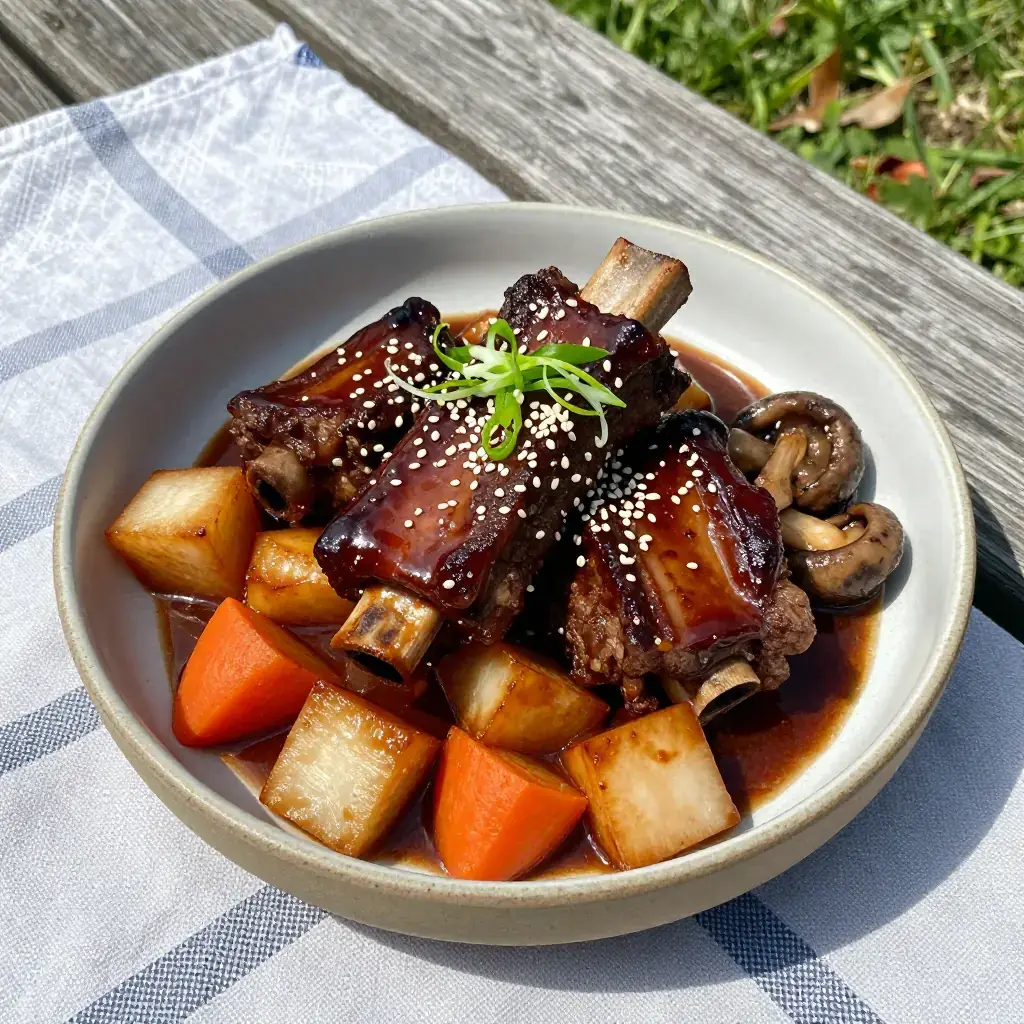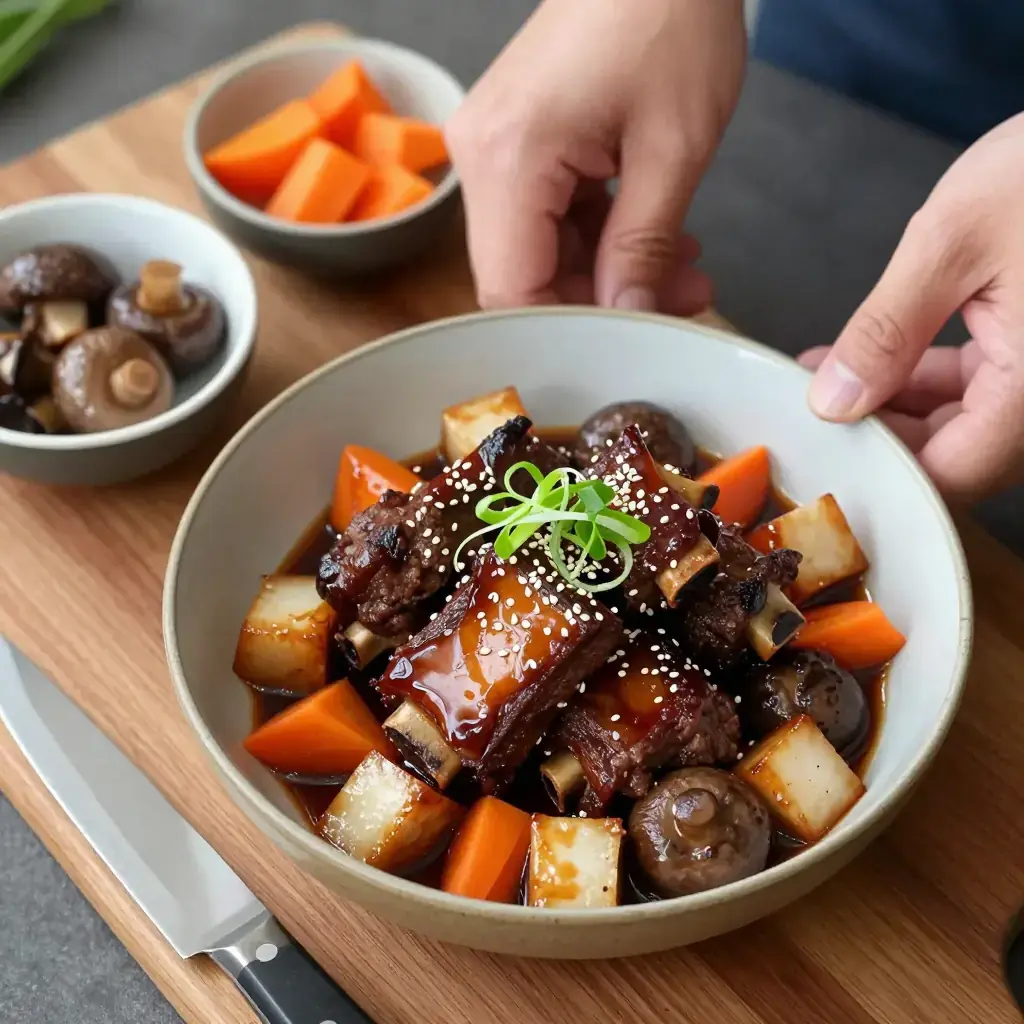 Galbi jjim is Korea's grandest celebratory braise — a dish reserved for the Lunar New Year table, Chuseok harvest festival, and milestone birthdays. Deeply lacquered in a soy, pear, and sesame sauce, the ribs become fork-tender while chestnuts, jujubes, and ginkgo nuts lend festive colour. This slow-cooker version makes the centrepiece dish achievable on any weekend.