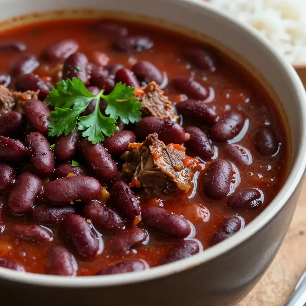 Fasoulia hamra — red bean stew — is the Lebanese cook's answer to a deep winter evening: a slow-braised pot of burgundy kidney beans and tender lamb shanks in a tomato and seven-spice broth. It is a dish of patience and simplicity, requiring little attention once on the stove, and rewards the cook with a stew of extraordinary depth. Eaten across all Lebanese households regardless of region or sect.