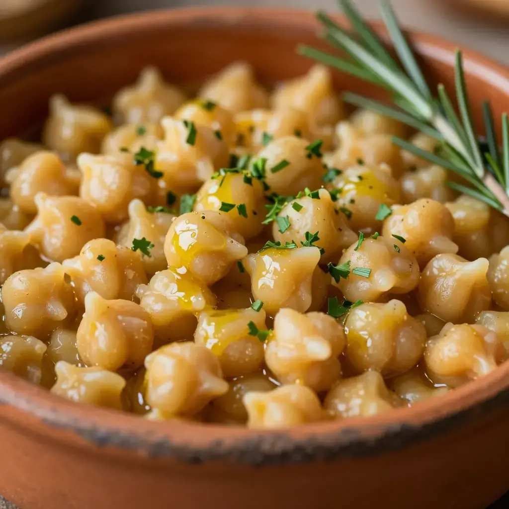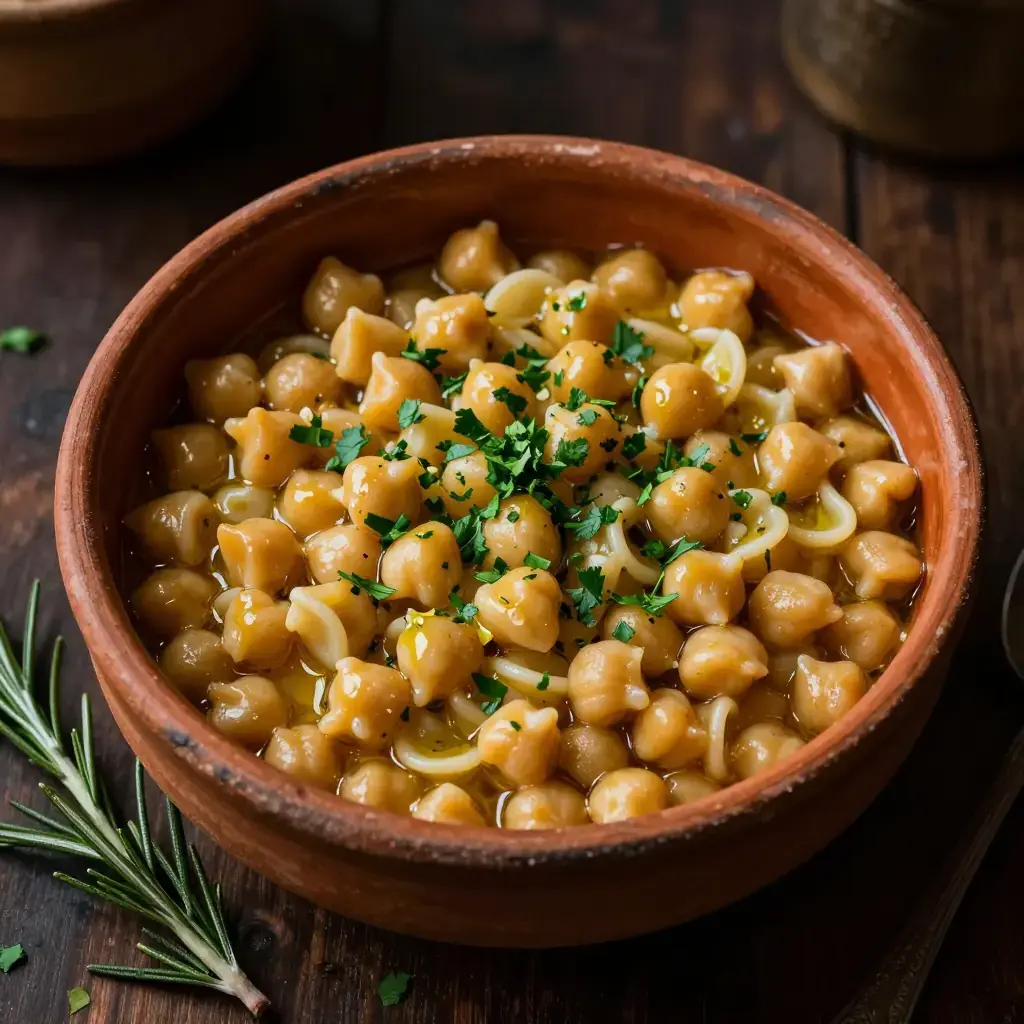 Pasta e ceci (pasta with chickpeas) is one of Rome's most ancient and beloved poor-kitchen dishes — a thick, unctuous stew that straddles the line between soup and pasta. Every Roman nonna has her version. The key is rosemary, anchovies for depth, and breaking some of the chickpeas to thicken the broth naturally. Eaten warm or at room temperature, it travels well and improves overnight.