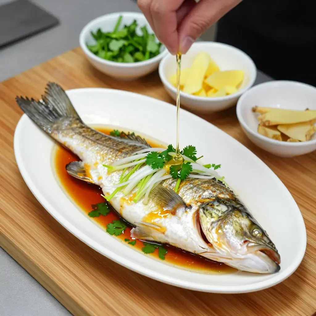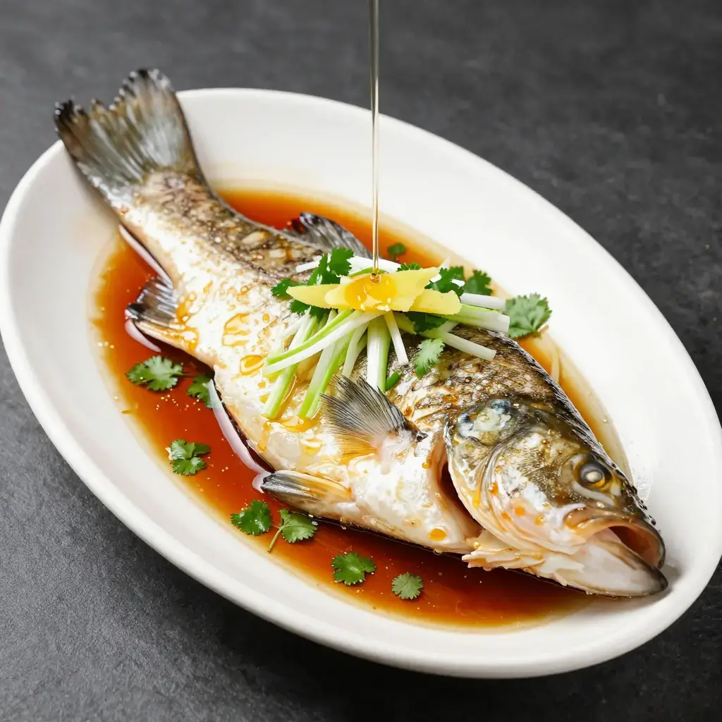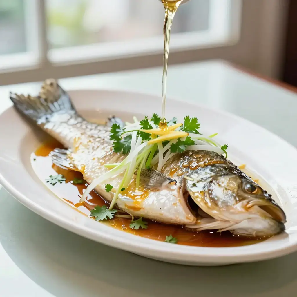 Cook's Notes: Timing is everything — overcooked fish loses its silky texture. Test by inserting a chopstick at the thickest point near the spine; it should meet slight resistance, not fall through. Ask your fishmonger for the freshest whole fish available.