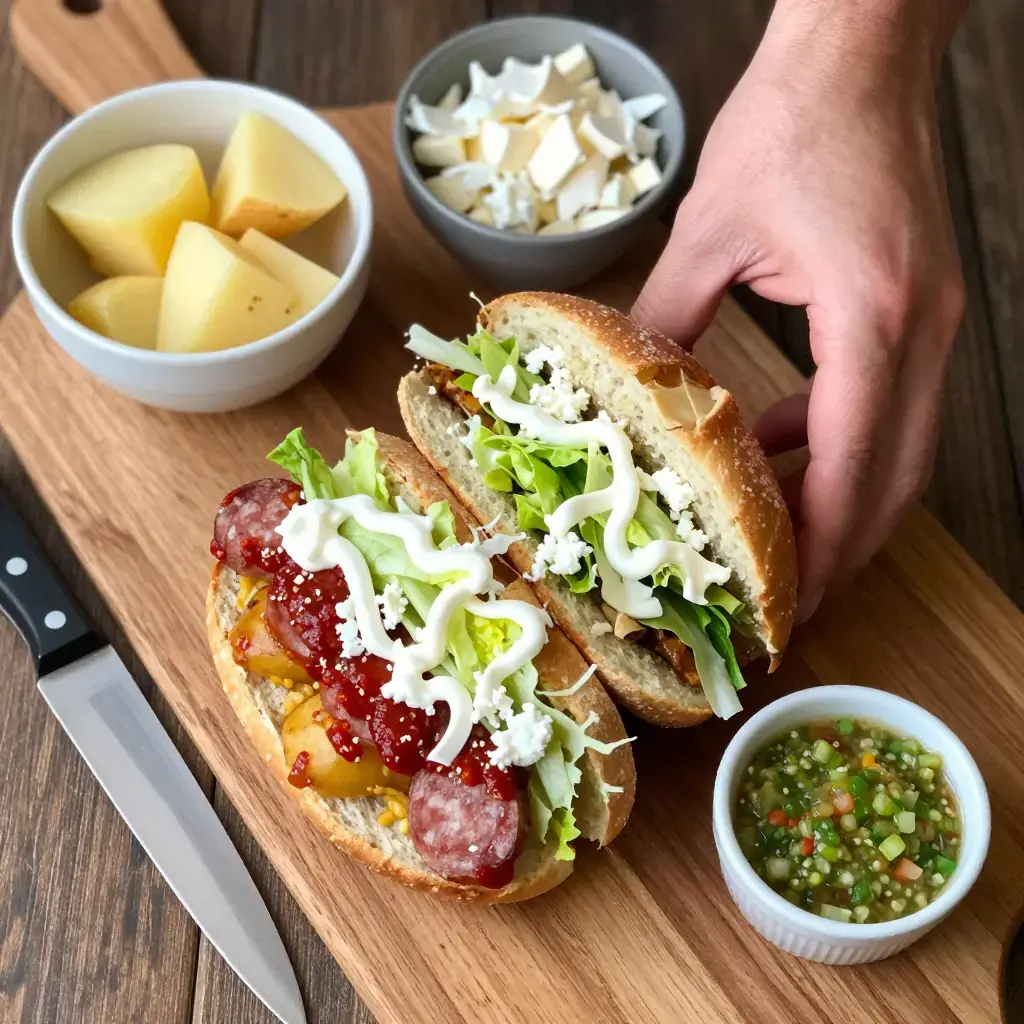 - Slice rolls open but do not separate. Remove a little of the inner crumb to make room for the filling. Fill each generously with the chorizo-potato mixture.
