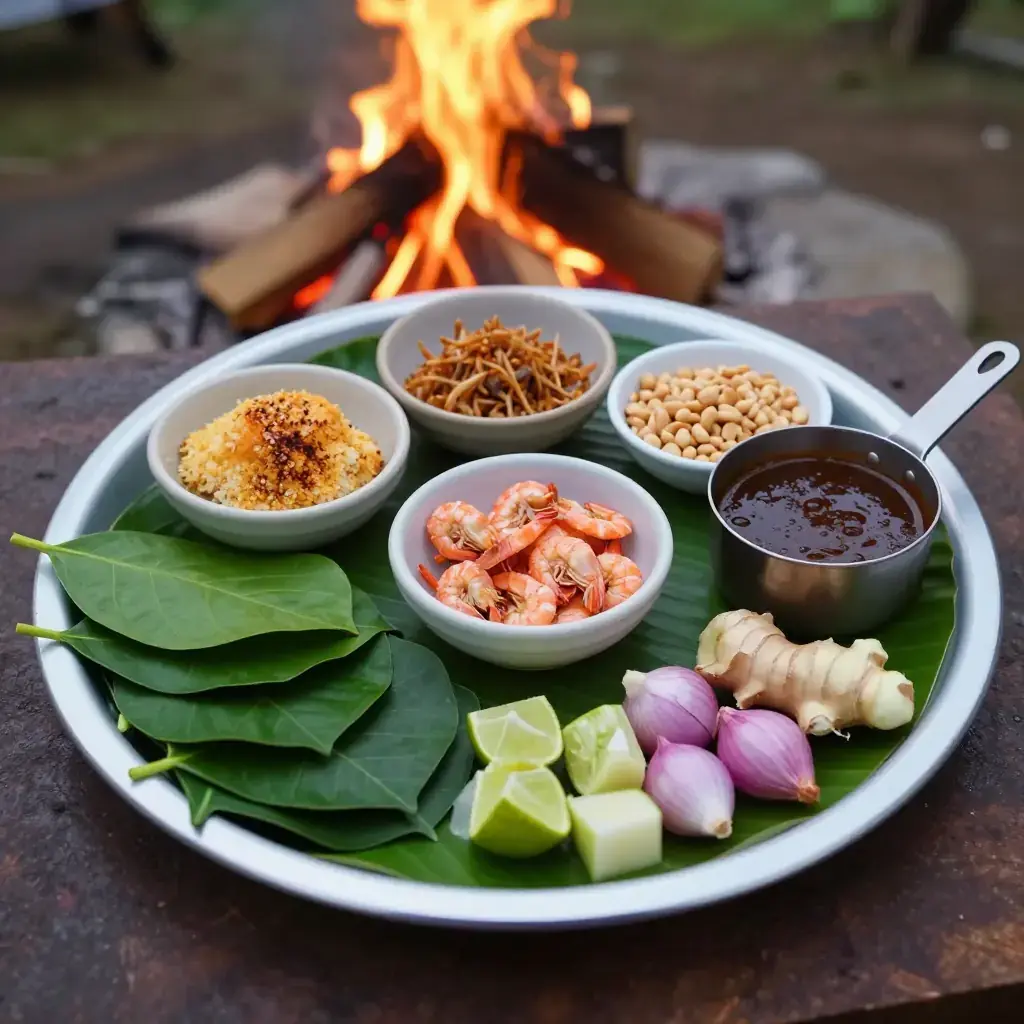 Cook's Notes: If betel leaves are unavailable, use young cha-plu (Piper sarmentosum) leaves, or substitute with fresh spinach — the flavour differs but the concept holds. The sauce keeps refrigerated for two weeks.