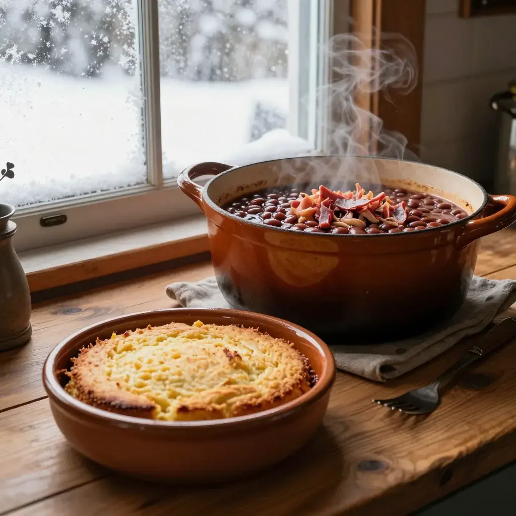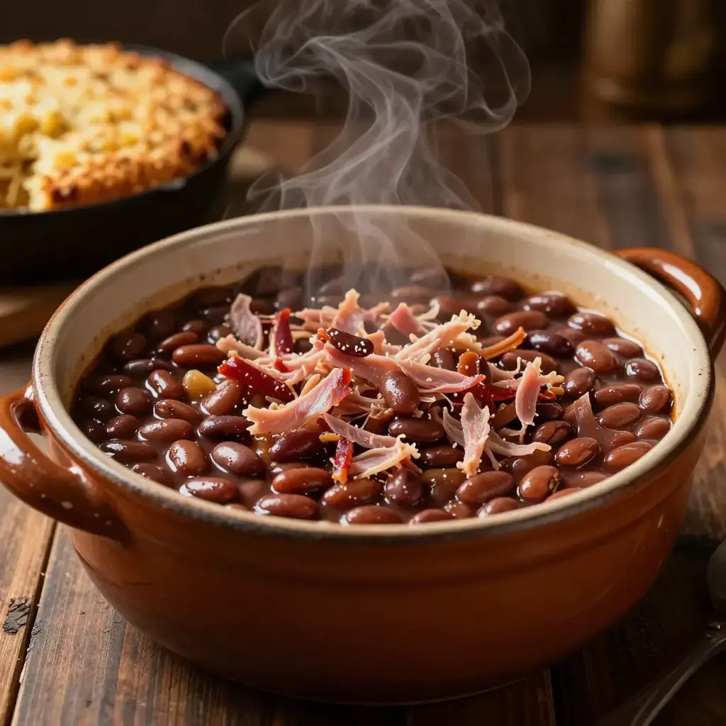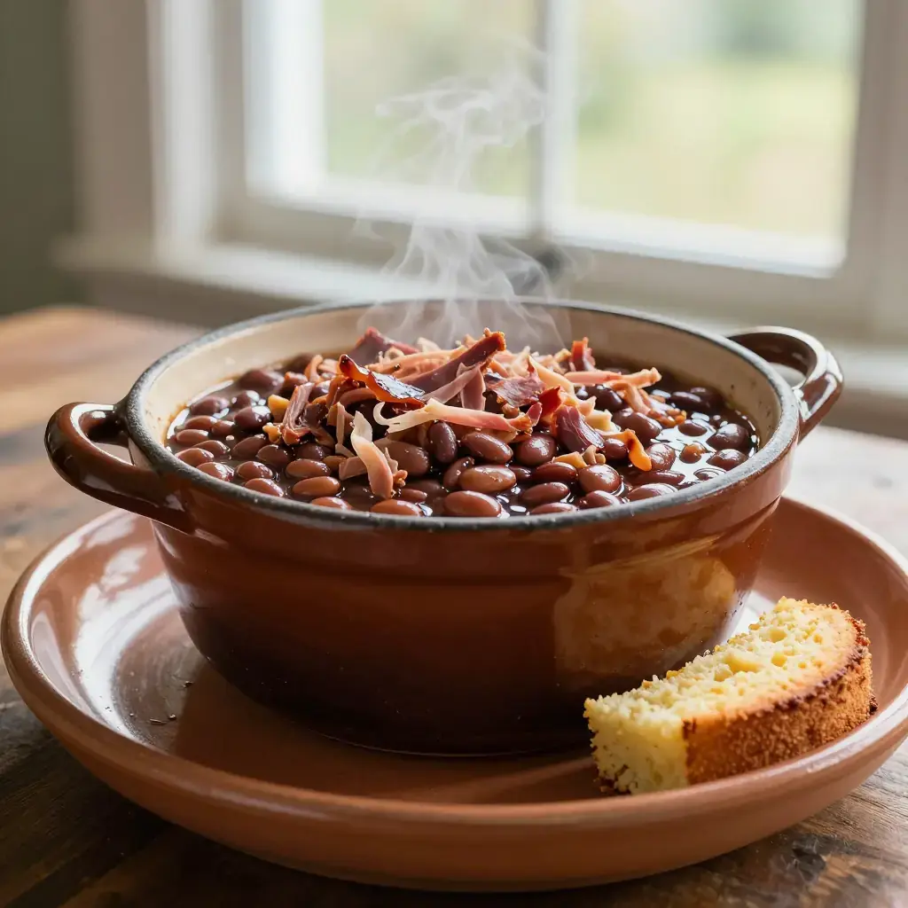 Long before canned beans arrived, Appalachian households soaked and slow-baked dried pinto or navy beans overnight in a wood stove with a smoked ham hock — a thrifty, protein-rich staple that fed families through hard winters. This heirloom technique produces beans with a silky interior and deeply savoury, smoky pot liquor that is nearly as prized as the beans themselves.