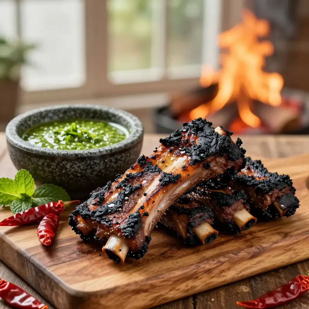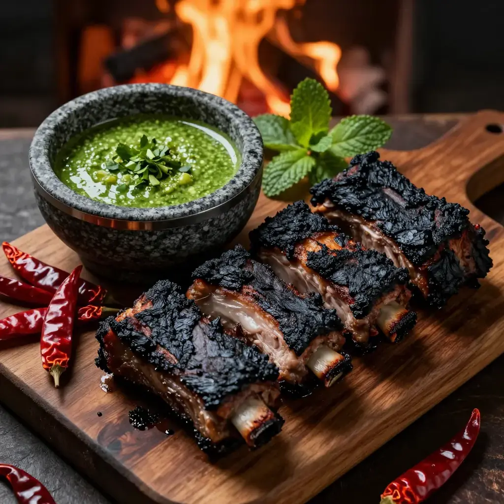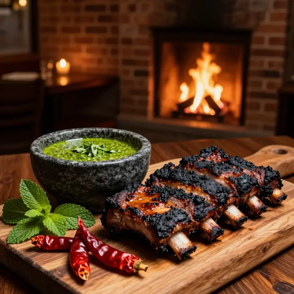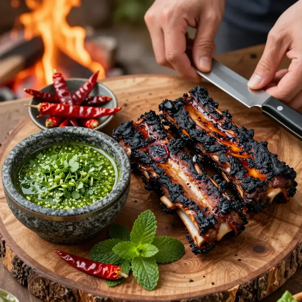 The Naxi people of Lijiang in northwestern Yunnan are celebrated for their open-fire cooking, which melds Tibetan, Han, and indigenous traditions. Na Xi Kao Rou — pork ribs or shoulder marinated in mountain spices and grilled over fragrant wood coals — is served with a dipping sauce of fresh local herbs: mint, coriander, and wild garlic pounded with dried chilli and salt. The dish is a fixture at outdoor Naxi festivals and the night markets of Old Town Lijiang.