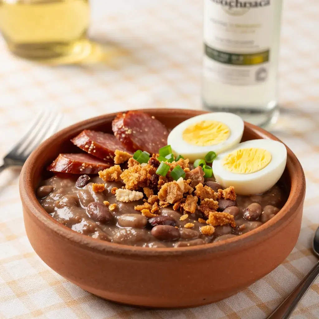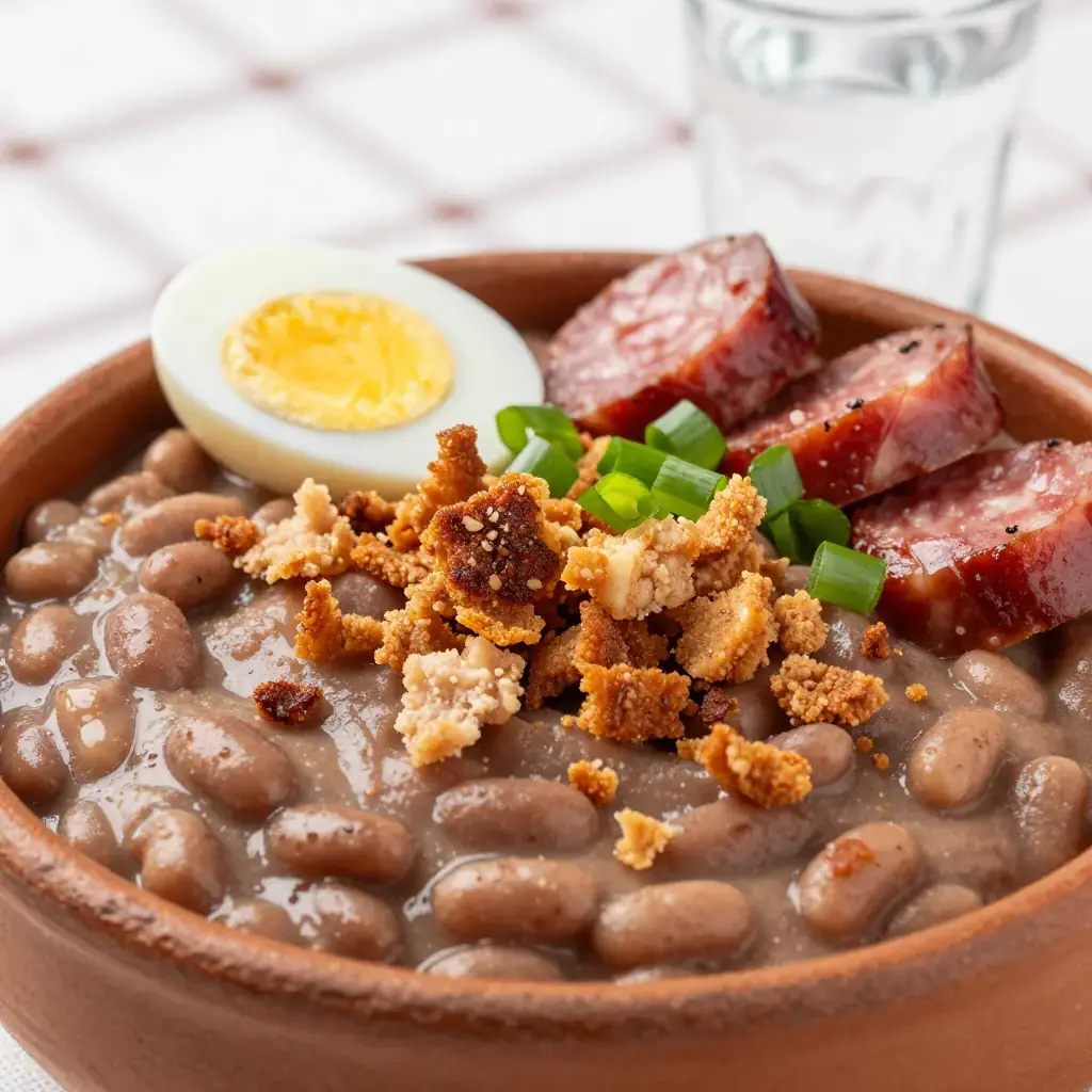 Tutu à Mineira is the soul of Minas Gerais cooking: carioca beans simmered to a thick purée, thickened further with toasted cassava or maize flour until they hold the drag of a spoon, then anointed with a sizzling torresmo (crispy pork skin crackling) and slices of linguiça sausage. The name tutu is said to derive from a Bantu word meaning porridge or paste, a reminder of the deep African imprint on Mineiro food. It is the quintessential Saturday lunch side dish, potluck staple, and comfort food of Brazil's highlands.