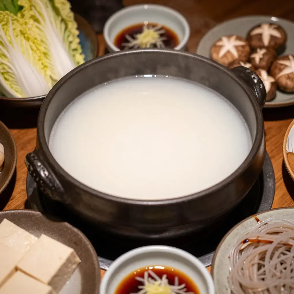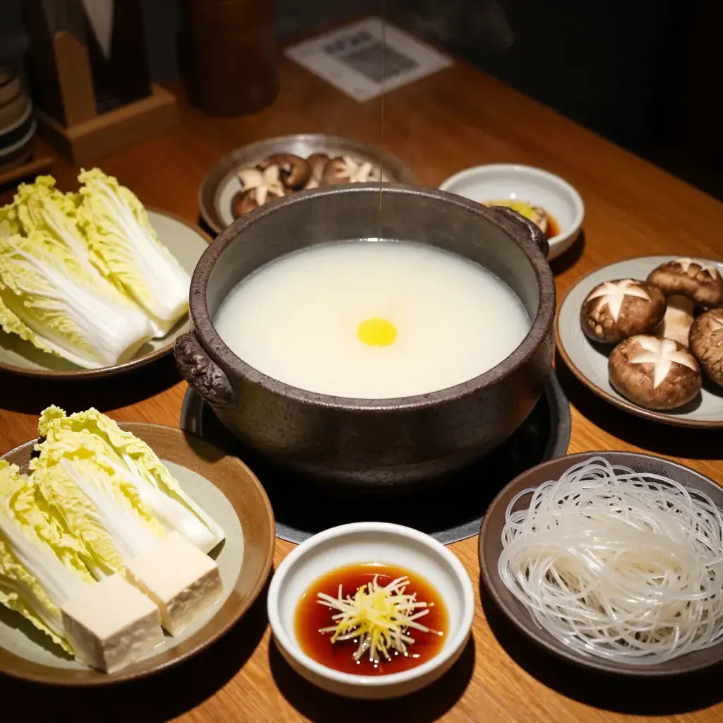 Mizutaki is Hakata's (Fukuoka's) celebrated chicken hotpot — a leisurely, multi-course weekend feast in which a milky-white collagen-rich broth is made by boiling bone-in chicken for hours, then vegetables, tofu, and glass noodles are cooked tableside and dipped in bright citrus ponzu.