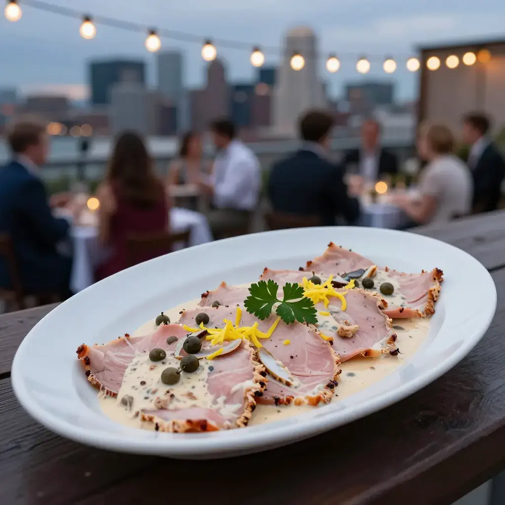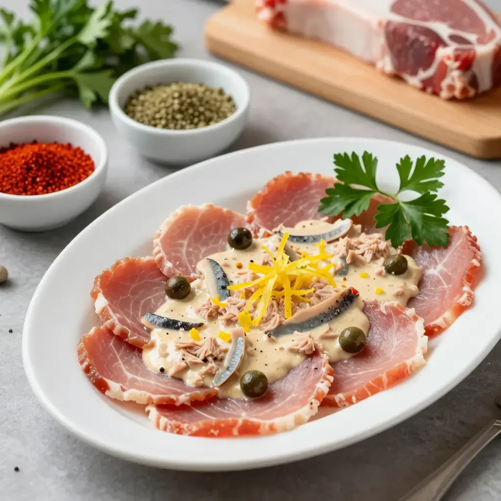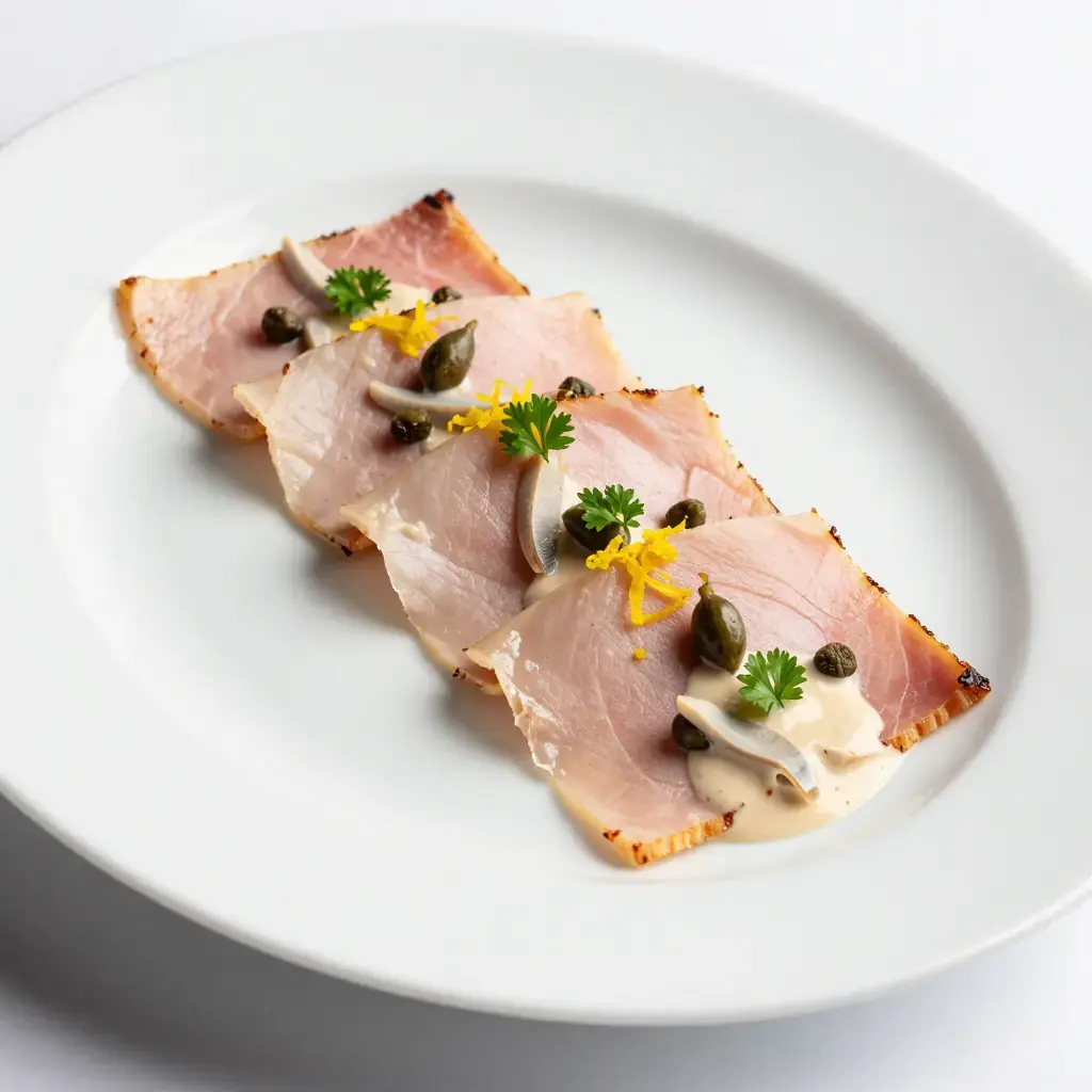 Vitello tonnato is Piedmont's most paradoxical and beloved dish: cold-roasted or poached veal sliced paper-thin, blanketed in a creamy, ivory sauce made from tinned tuna, capers, anchovies, and lemon. The combination sounds implausible but produces a savoury, umami-rich harmony that has been a centrepiece of northern Italian summer tables since the eighteenth century. It is a dish of patience — the veal must rest overnight in its sauce — and is always served cold, as a lunch antipasto or secondo piatto.