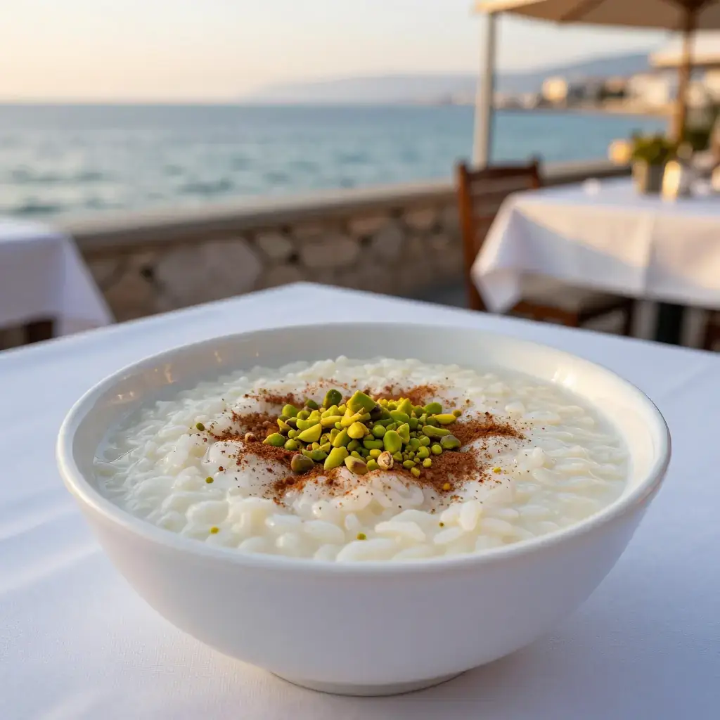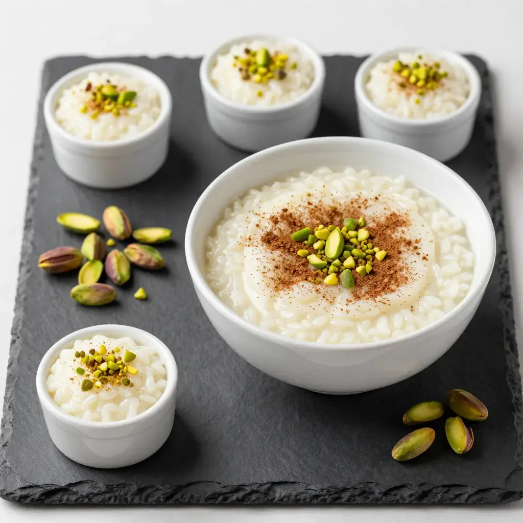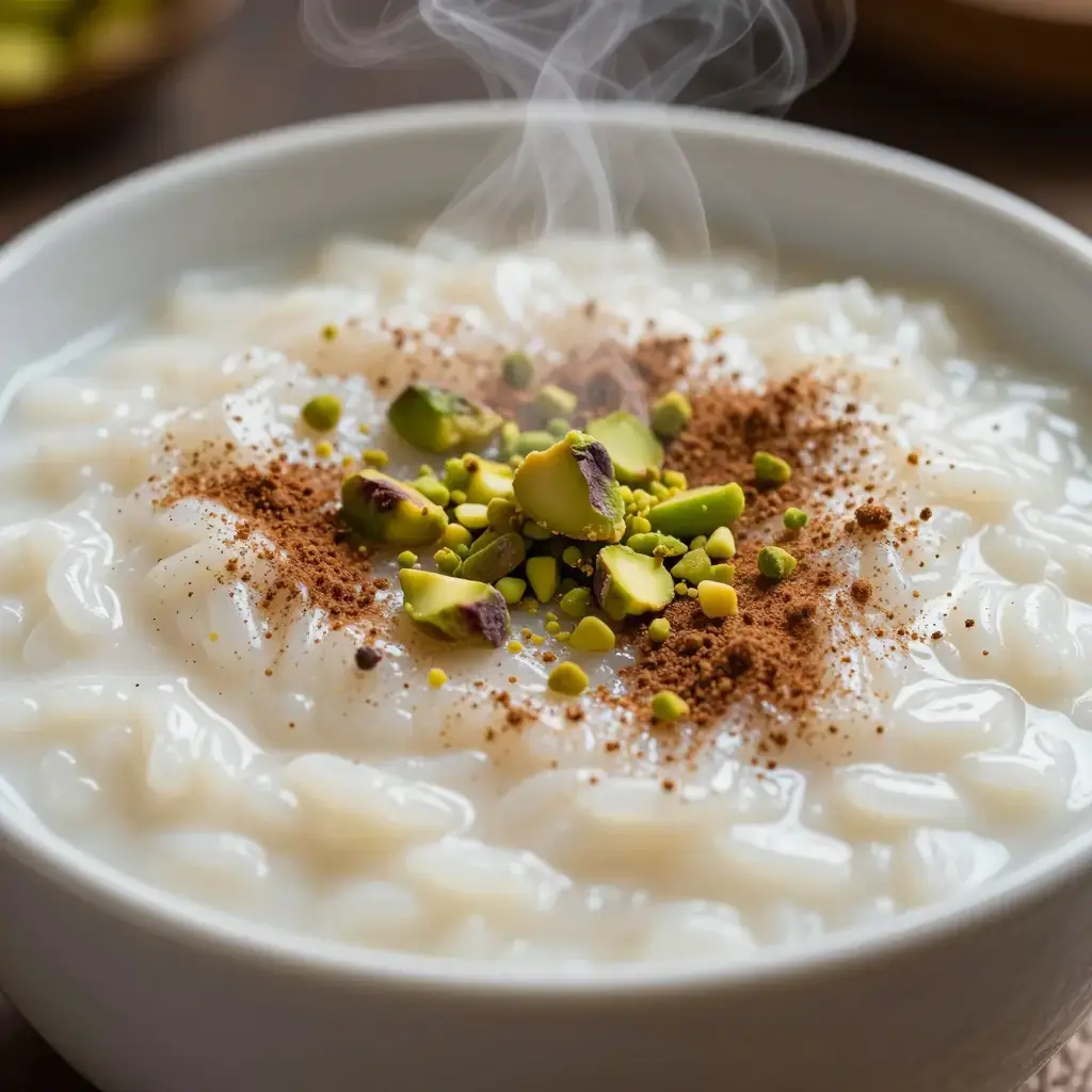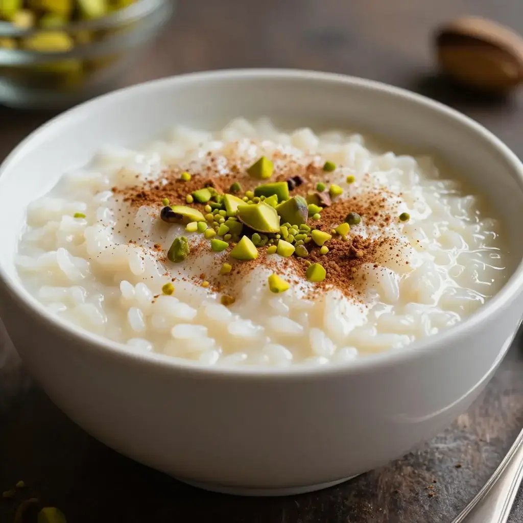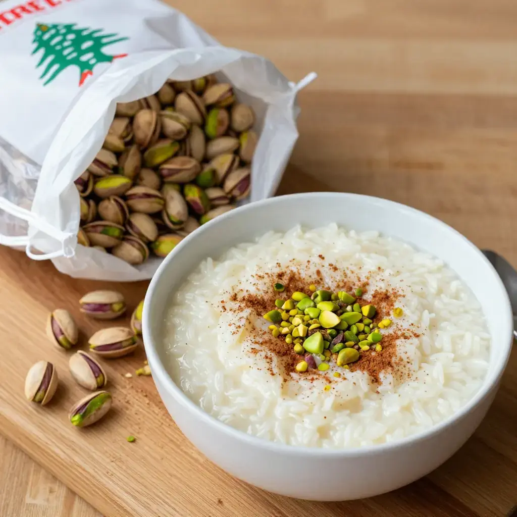 Riz bi haleeb is Lebanon's classic rice pudding — silkier and more perfumed than its Western counterparts, scented with rose water and orange blossom water, and finished with crushed pistachios. It is a fixture of Lebanese celebrations, Ramadan iftars, and family gatherings, served chilled or at room temperature from a large communal dish.