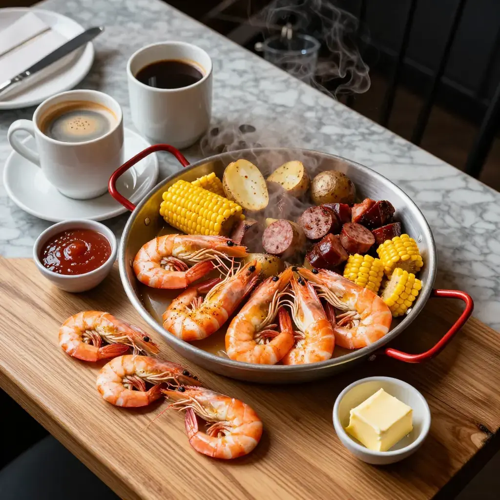 Frogmore Stew — named for a community on St. Helena Island, South Carolina — is the great communal feast of the American Lowcountry coast. Shrimp, smoked sausage, sweet corn and new potatoes are boiled together in a fiercely spiced crab-boil broth and then dumped in a glorious heap onto a newspaper-covered table. It is a celebration in a pot.