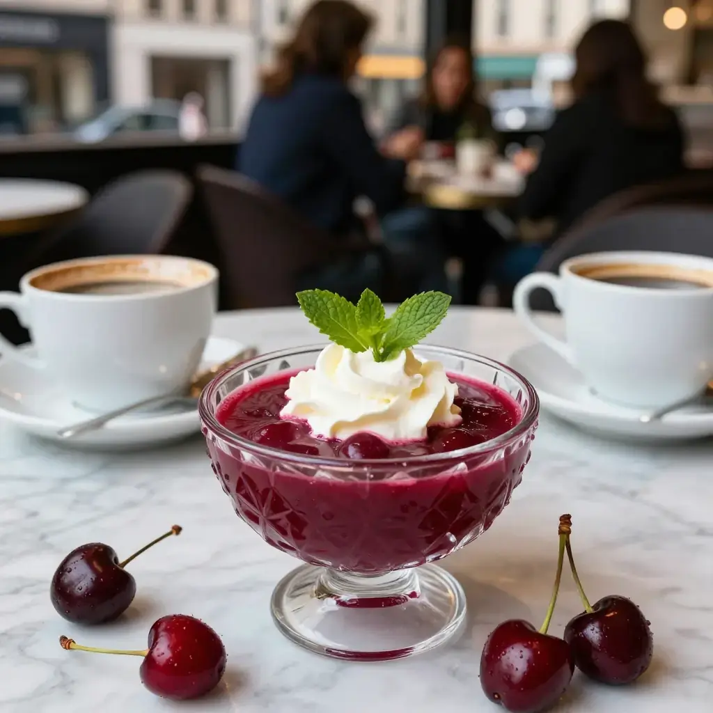 Körsbärssoppa — cold sour cherry soup — is a Swedish midsummer tradition, a chilled fruit soup poured from a glass jug at a table laden with flowers and new potatoes. Unlike the blueberry version, this one uses morello cherries, whose deep tartness is tamed with a little sugar and brightened with cardamom. It doubles as a light dessert or a palate-cleansing starter.