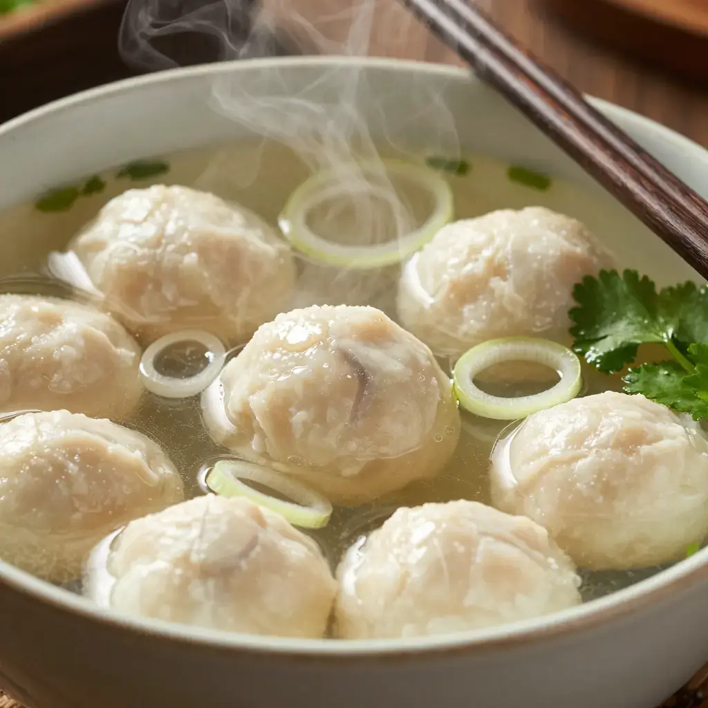 Fujian fish balls are a point of regional pride — springy, bouncy spheres of pure fish paste that are so prized that local restaurants display their elasticity like a sport. Unlike starchy imitation fish balls, authentic yu wan are hand-beaten from fresh Spanish mackerel or grass carp until the protein bonds form a supple, meat-free emulsion. They are served in a delicate clear broth seasoned with white pepper and sesame oil, a bowl of quiet perfection.