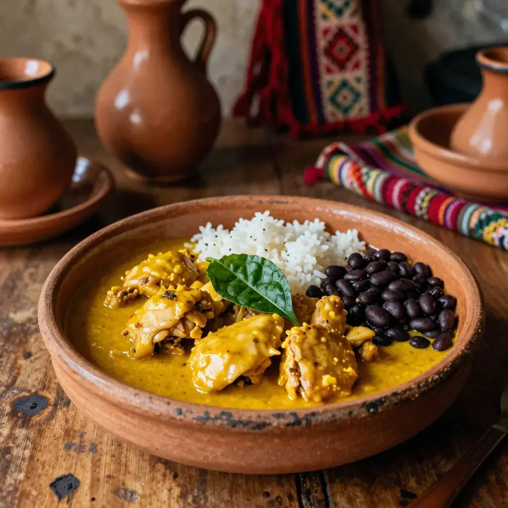 # Mole Amarillo con Pollo Mole Amarillo is the workhorse mole of Oaxaca, the everyday sauce that Zapotec and Mixtec communities have prepared for centuries in clay pots over wood fires. Less famous than mole negro but arguably more complex in its vegetable architecture, it achieves its characteristic golden hue from a blend of yellow and mulato chilies, tomatillos, and hoja santa — the anise-scented herb that grows wild across the Mexican highlands. It is traditionally served at baptisms, weddings, and Día de los Muertos feasts. Serves: 6 ## Ingredients **Chicken** - 1 whole chicken, about 1.8 kg (4 lb), cut into 8 pieces - 1 white onion, quartered - 4 cloves garlic - 2 tsp (10g) salt **Mole** - 4 chilhuacle amarillo or guajillo chilies, stems and seeds removed - 2 mulato or ancho chilies, stems and seeds removed - 500g (1 lb) tomatillos, husked - 2 medium tomatoes - 1 white onion, roughly chopped - 6 cloves garlic, unpeeled - 2 large fresh hoja santa leaves (or 1 tsp anise seed as substitute) - 2 tbsp (30ml) vegetable oil - 3 tbsp (24g) masa harina (corn flour), dissolved in 100ml cold water - Salt to taste - 500ml (2 cups) reserved chicken broth ## Instructions 1. **Poach chicken:** Place chicken pieces in a pot with onion, garlic, salt, and 2 litres (8 cups) water. Bring to a boil, skim foam, then simmer 35-40 minutes until cooked through. Remove chicken; strain and reserve broth. 2. **Toast chilies:** Heat a dry comal or skillet over medium heat. Toast dried chilies 30-45 seconds per side until fragrant and softened — do not burn. Soak in hot water 20 minutes; drain. 3. **Char vegetables:** On the same comal, char tomatillos, tomatoes, onion, and unpeeled garlic over medium-high heat, turning, until blackened in spots (8-12 minutes). Peel garlic. 4. **Blend:** In batches, blend soaked chilies with charred vegetables, hoja santa, and 200ml (¾ cup) chicken broth until very smooth. Pass through a medium-mesh sieve for a silkier texture. 5. **Fry the mole:** Heat oil in a large, deep pot over high heat until smoking. Pour in blended mole — it will splatter and sizzle dramatically. Stir and fry 5 minutes, reducing heat to medium, until mole darkens and thickens. 6. **Thin and simmer:** Add remaining chicken broth and bring to a gentle simmer. Stir in masa harina slurry; simmer 20-25 minutes until mole coats a spoon and loses any raw flavour. Season generously with salt. 7. Add poached chicken pieces to the mole and heat through 10 minutes. Serve with black beans, white rice, and warm tortillas. **Cook's Notes:** Chilehuacle amarillo chilies are available at Mexican grocers and online — they are irreplaceable for the true colour and flavour. The mole can be made 3 days ahead or frozen for a month; fry it again briefly when reheating to revive the flavour. Hoja santa is increasingly available frozen at Latin markets.Images