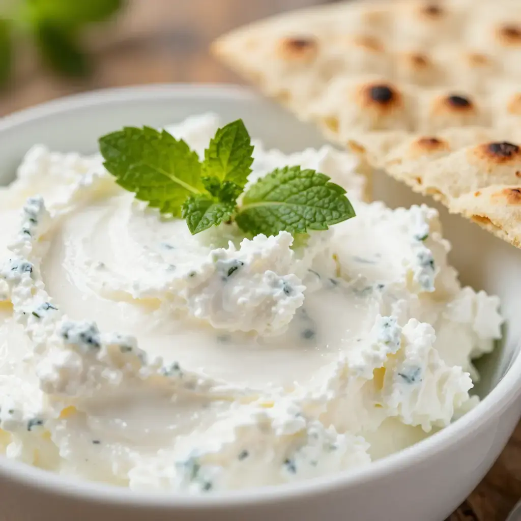 Nadugi is a delicate fresh cheese made from the whey left over after producing sulguni or imeruli cheese. The whey is gently heated until tiny white curds rise and are skimmed off, producing a cloud-light, slightly tangy cheese with a texture somewhere between ricotta and crème fraîche. In Georgia it is traditionally blended with fresh spearmint and sometimes pickled jonjoli (bladdernut shoots), then served chilled.