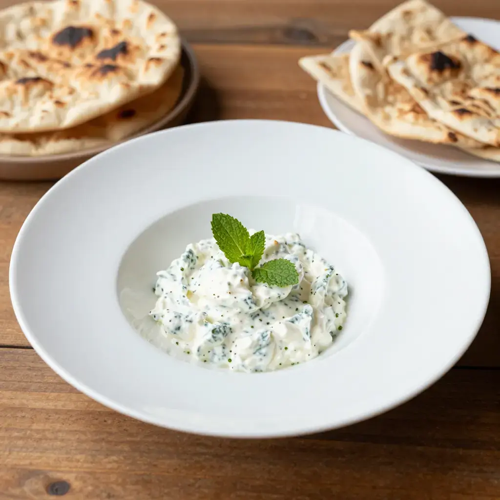 - Chill for at least 30 minutes before serving. Serve scooped onto warm flatbread.