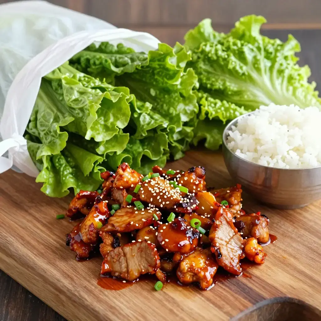 To serve: steamed white rice, lettuce leaves