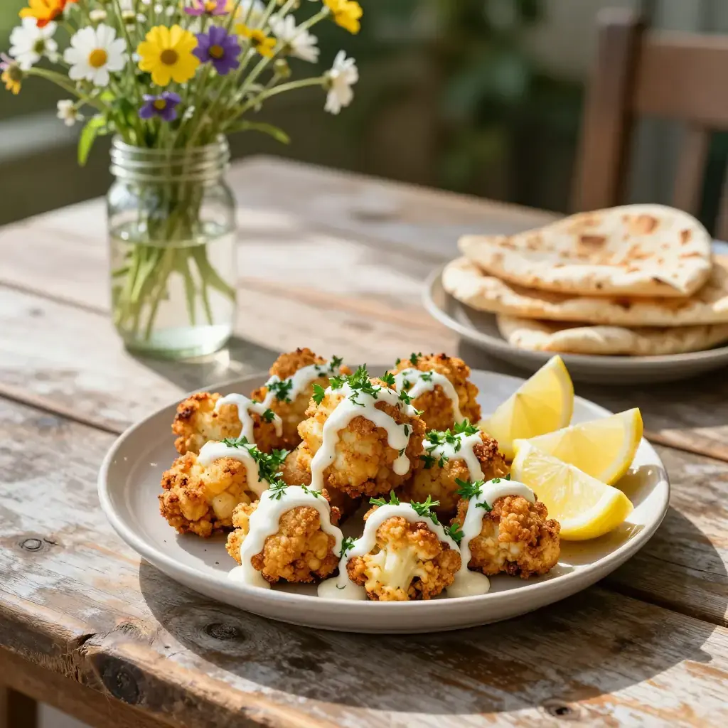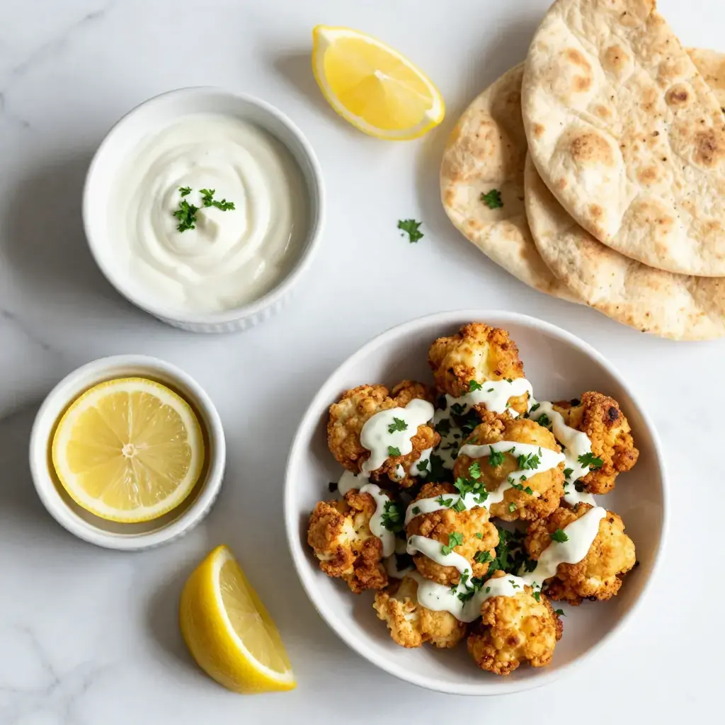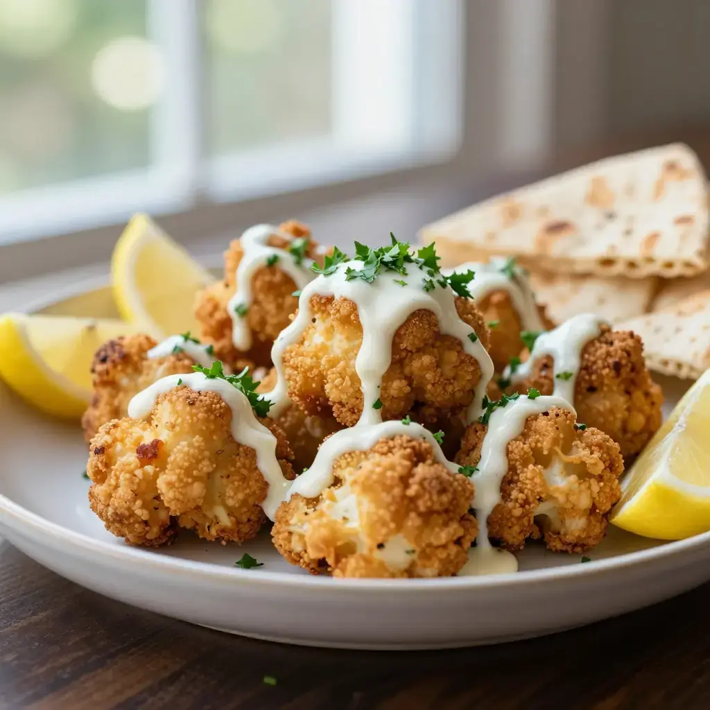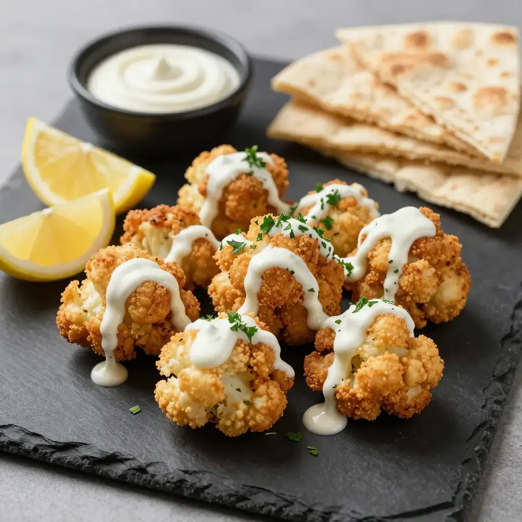 - Arrange the fried cauliflower on a serving platter. Spoon the tahini sauce generously over the top.