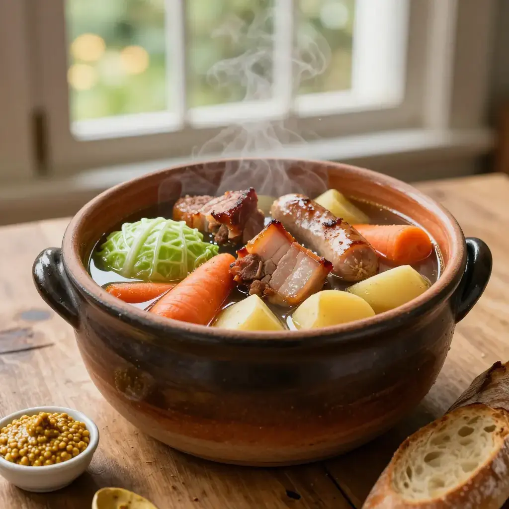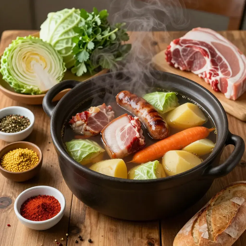 Potée is the great hearty one-pot meal of the Auvergne highlands in central France, eaten by farmers and peasants for centuries to survive the harsh volcanic plateau winters. A slow-simmered assembly of smoked pork, salt-cured meats, cabbages, and root vegetables, it is the rustic ancestor of the more refined pot-au-feu.