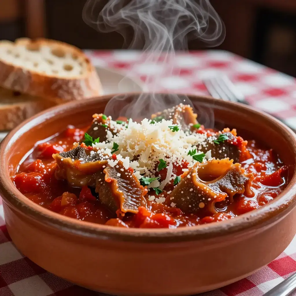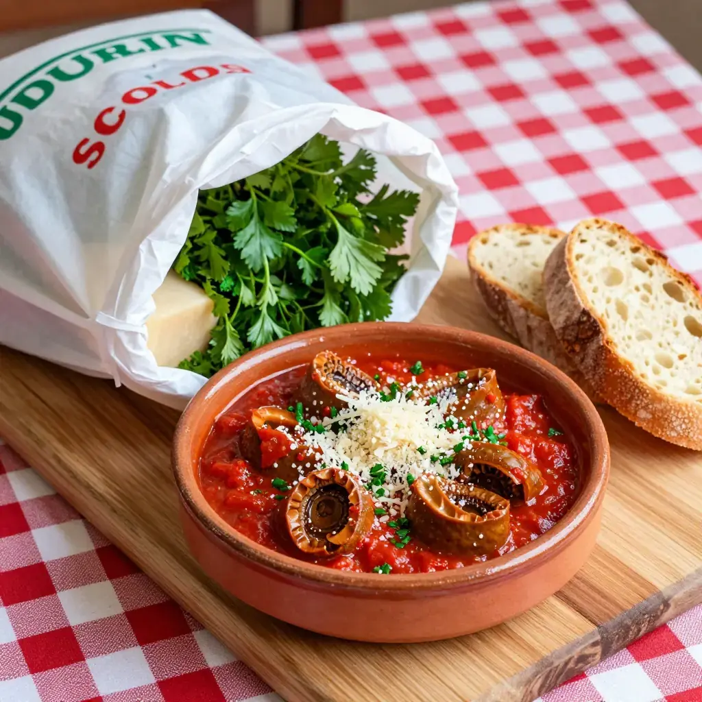 In Florence, trippa is not a dish for adventurous eaters — it is everyday street food sold from carts at market stalls (the famous lampredotto and trippa carts of Mercato Centrale), and a beloved home-cooked meal that Florentine nonnas have prepared for generations. Braised in a fragrant tomato sauce with celery and herbs, it becomes yielding and deeply savoury.
