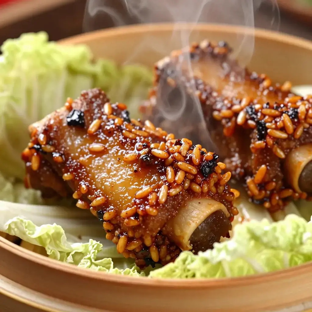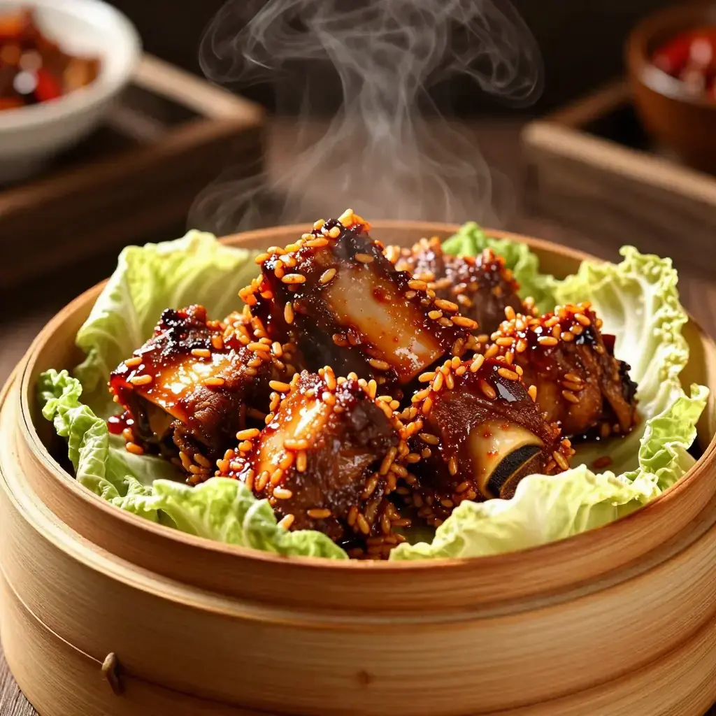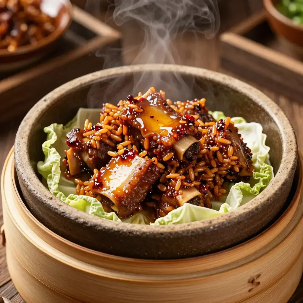 Fen Zheng Pai Gu is a pillar of Sichuan home cooking and teahouse menus — pork ribs coated in a seasoned dry mixture of ground toasted rice and spices, then steamed until the coating becomes a dense, flavour-absorbing crust and the meat falls from the bone. The Sichuan version differs from its Hunan cousin by incorporating doubanjiang (fermented bean paste) and the characteristic ma (numbing) note of Sichuan pepper. It is rich, deeply savoury, and requires remarkably little active effort.