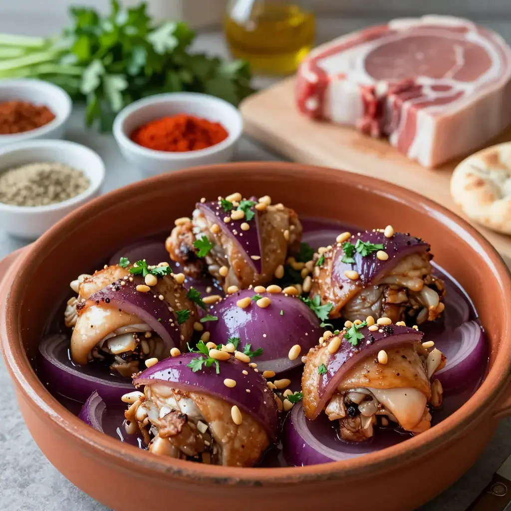 This beautiful dish from the Lebanese mountains relies on the tangy, wine-dark spice sumac to braise chicken thighs into something extraordinary. The onions melt into a jammy sauce that is simultaneously sour, sweet and deeply savoury — perfect spooned over warm flatbread or rice. It is a staple of home cooking and mezze feasts from Tripoli to the Bekaa Valley.