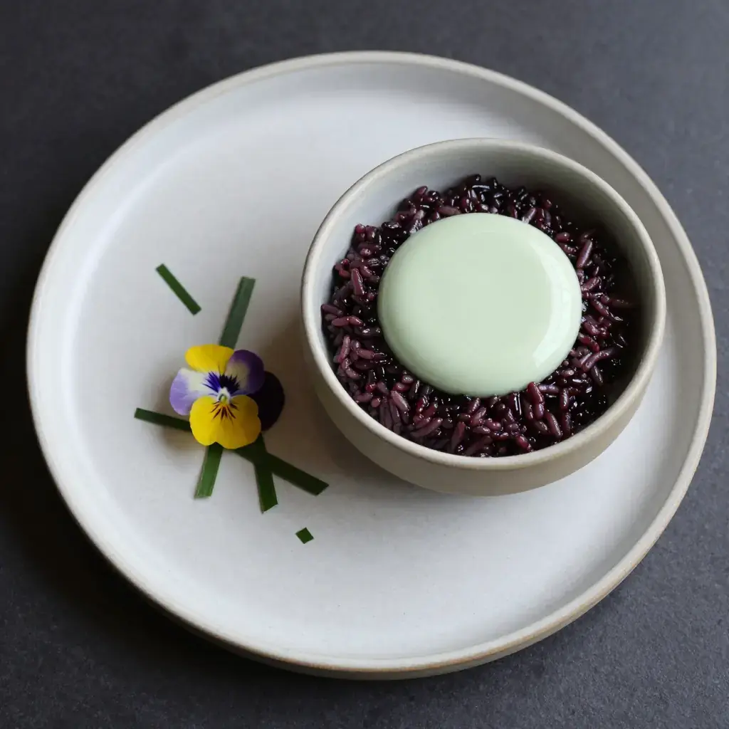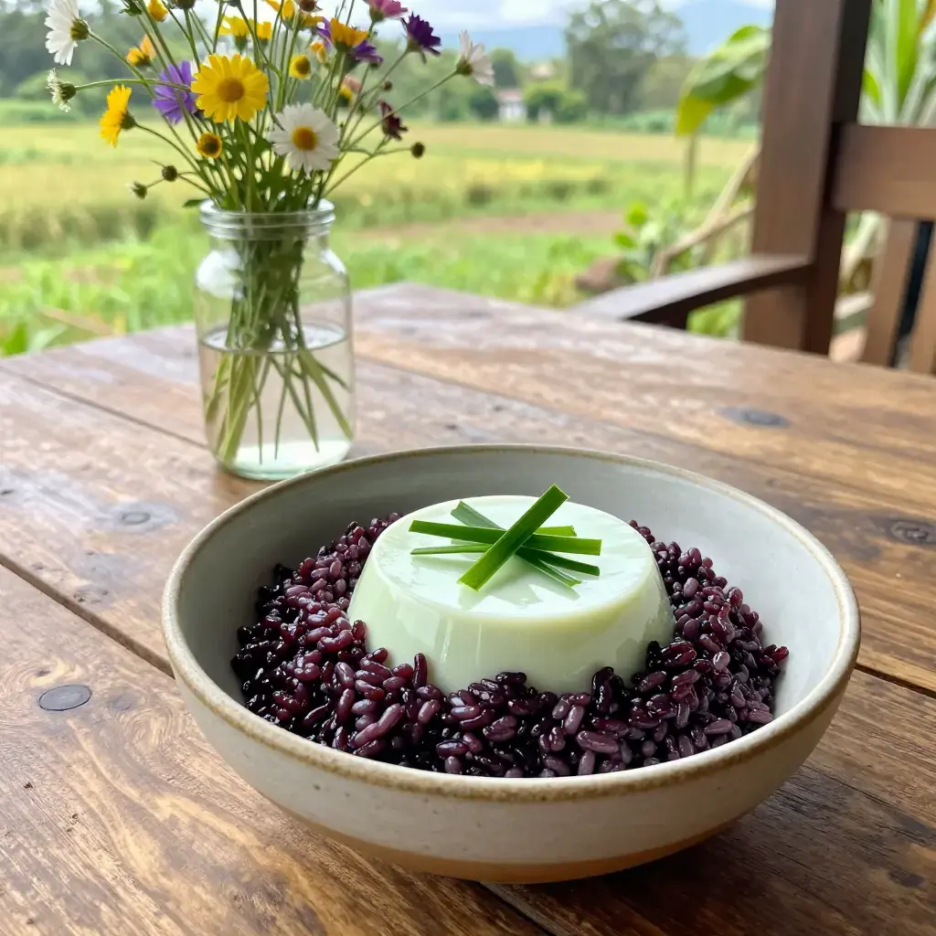 Khao Neow Dam Sang Kaya pairs earthy, nutty black sticky rice with a silky steamed coconut-pandan custard. This dessert is deeply rooted in central Thai royal cuisine, where the contrast of purple-black rice and pale green custard was prized as much for its beauty as its taste. It is traditionally served at temple fairs and family celebrations.