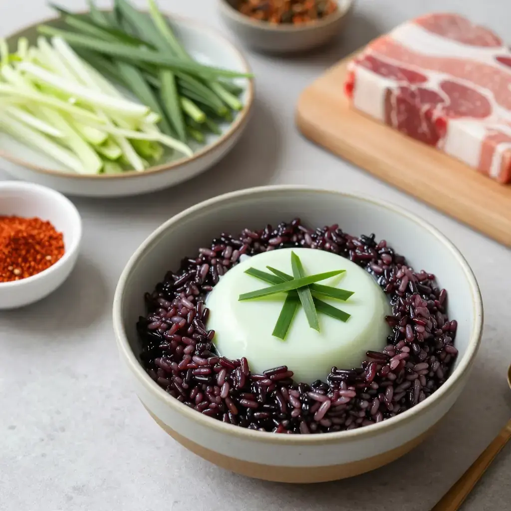 - 300g (1½ cups) black glutinous rice, soaked overnight