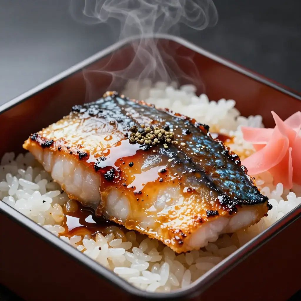 - Serve immediately over steamed rice, dusted with sansho powder, with pickled ginger on the side.