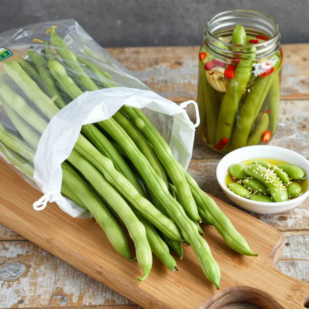 - Wash the long beans thoroughly, then cut into 8cm (3 in) lengths. Allow to air-dry on a clean cloth for 1 hour — surface moisture inhibits fermentation.