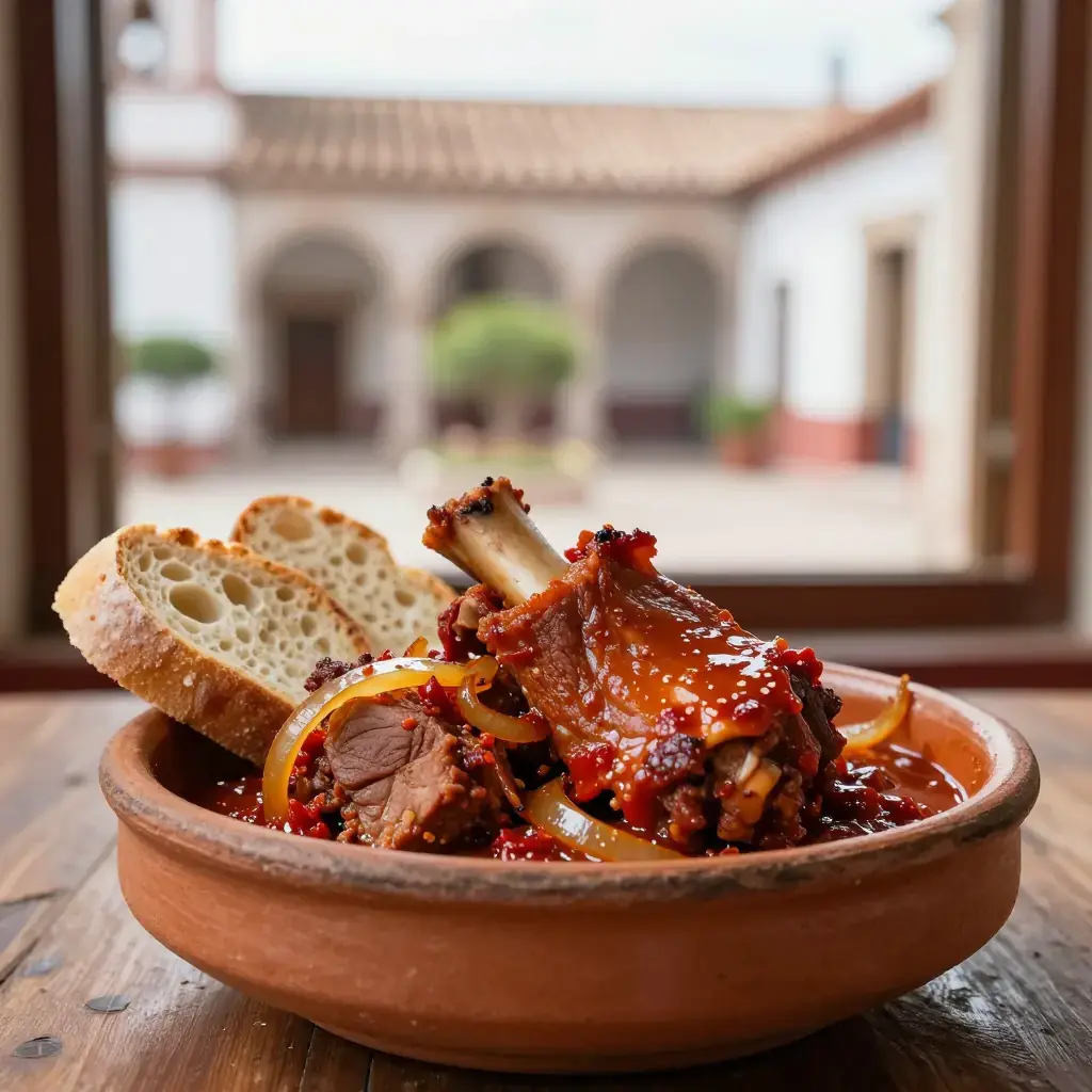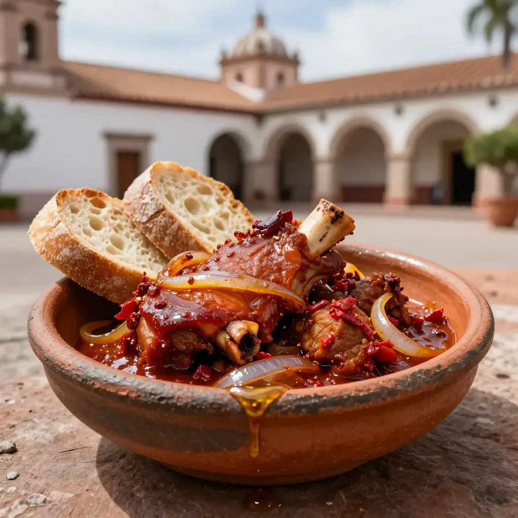 # Adobo de Chancho Adobo de Chancho is a beloved Sunday morning tradition in Arequipa and Cusco, where pork is marinated overnight in chicha de jora, dried red chillies, and spices, then slow-braised until deeply fragrant. The fermenting corn beer tenderises the meat while adding a subtle sourness that no other marinade can replicate. This is a multi-day recipe — the best versions are started two days before serving. Serves: 6 ## Ingredients - 1.2 kg (2.6 lb) bone-in pork shoulder, cut into large chunks - 500ml (2 cups) chicha de jora (or substitute 400ml pale beer + 100ml cider vinegar) - 4 ají panca chillies, dried (or ancho chillies), soaked in hot water and blended to a paste - 3 ají mirasol chillies, soaked and blended (or guajillo) - 6 cloves garlic, minced - 1 tsp (5ml) ground cumin - 1 tsp (5ml) dried oregano - 1 tsp (5ml) black pepper - 1 tsp (5ml) fine salt - 2 medium red onions, cut into thick wedges - 2 tbsp (30ml) sunflower oil - Crusty bread or boiled potatoes to serve ## Instructions 1. **Day 1 — Marinate:** Combine the chicha de jora, chilli pastes, garlic, cumin, oregano, pepper, and salt in a large bowl. Add the pork pieces and onion wedges, turning to coat thoroughly. Cover and refrigerate for 12–24 hours. 2. **Day 2 — Braise:** Remove the pork from the refrigerator 30 minutes before cooking. Heat the oil in a heavy casserole over medium-high heat. Sear the pork pieces in batches for 3–4 minutes per side until well browned. Remove and set aside. 3. Pour all the marinade and onions into the casserole. Bring to a boil, scraping up the browned bits. Return the pork to the pot. 4. Cover tightly and cook over low heat for 1.5–2 hours, turning the pork halfway through, until the meat is completely tender and falls from the bone. The sauce should be thick and deeply red. 5. Adjust seasoning and skim any excess fat from the surface. 6. Serve in deep bowls with crusty bread to soak up the sauce, or with boiled yellow potatoes alongside a side of pickled onions. **Cook's Notes:** Authentic adobo Arequipeño uses only chicha de jora — the lactic acid from the fermentation is what makes this dish. The recipe works best with bone-in pork for richness. This dish tastes even better the next day.Images