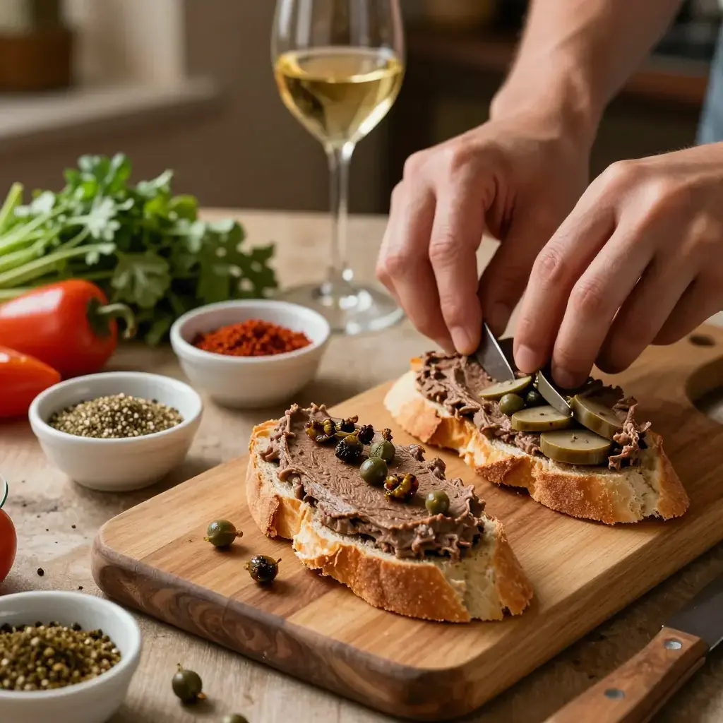 Cook's Notes: The livers must retain a blush of pink at their centre — overcooked livers turn grainy and bitter. Traditional Florentine crostini di fegatini are spreadable but textured, not pureed smooth; embrace the rustic chop.
