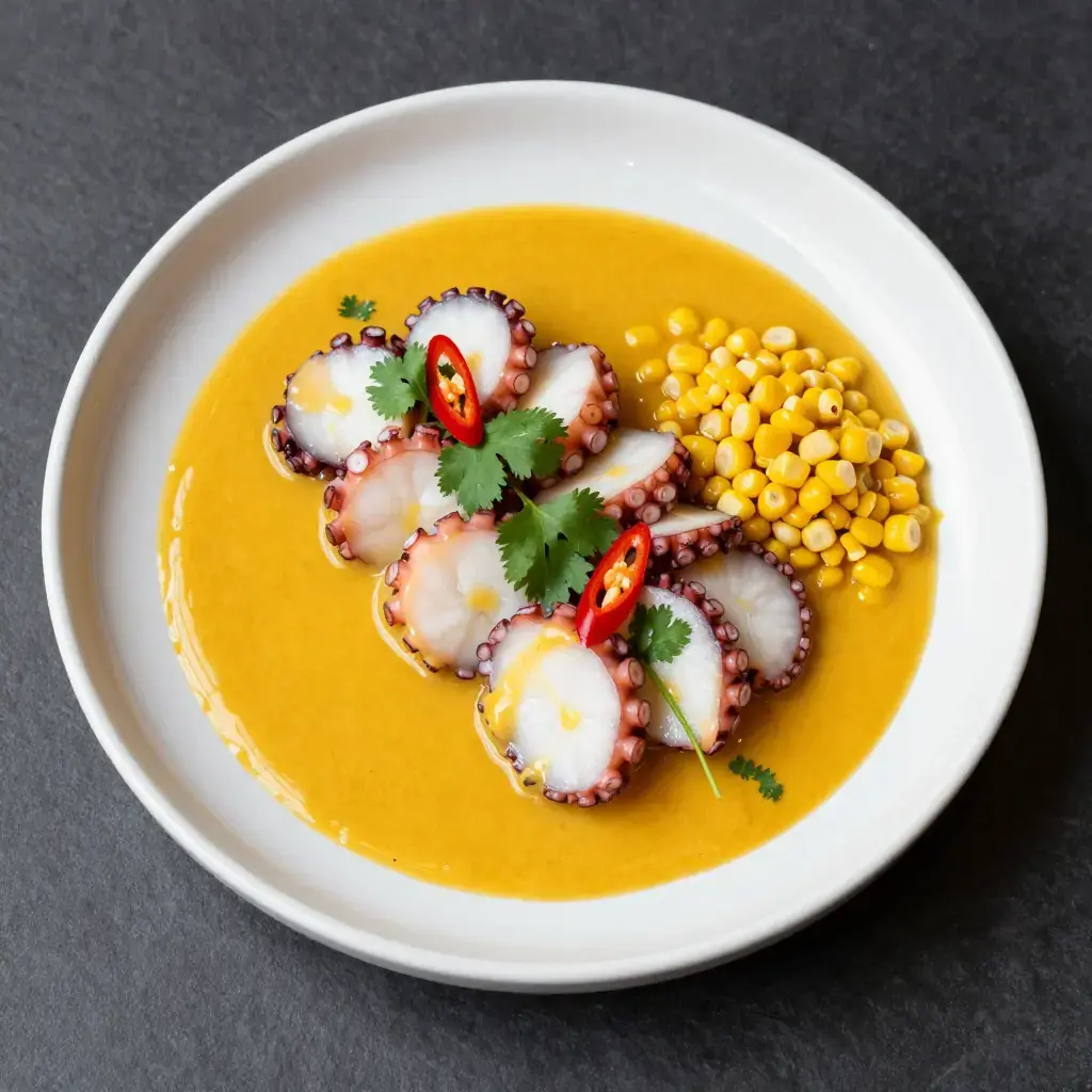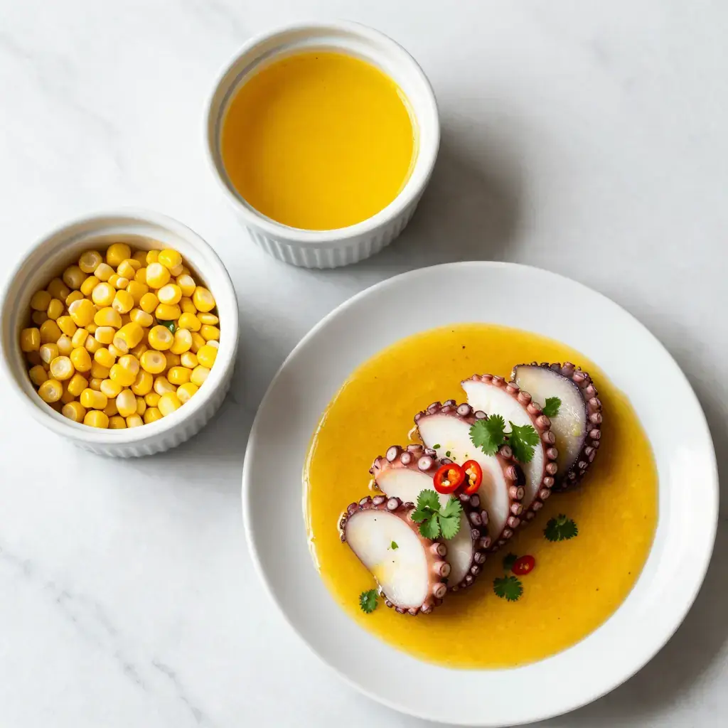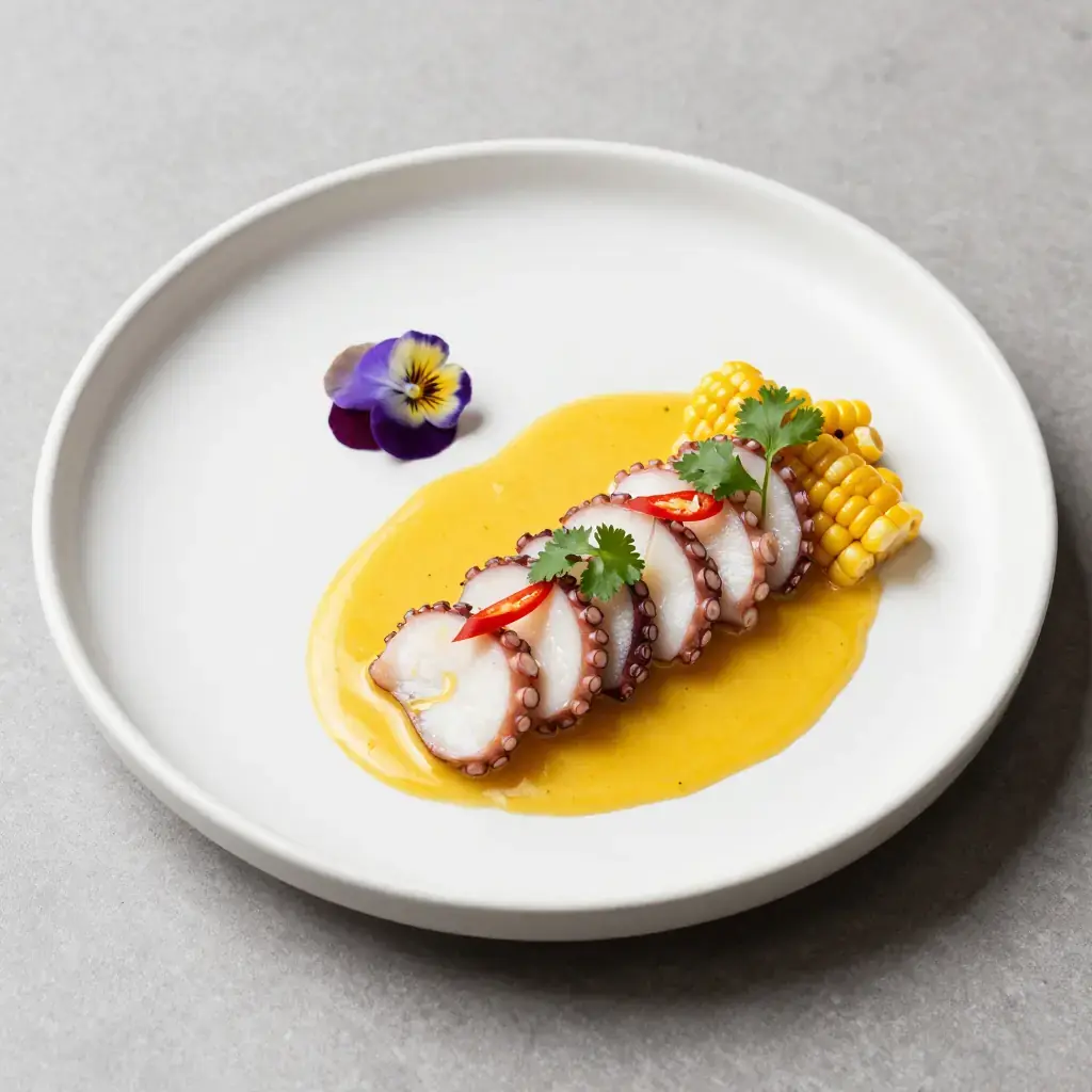 Tiradito is Peru's answer to Japanese sashimi — thin-sliced raw or just-cooked seafood dressed in leche de tigre. This version uses tender braised octopus laid over a bright aji amarillo tiger's milk, a dish found in Lima's cevicherías where Nikkei (Japanese-Peruvian) influence is most visible.